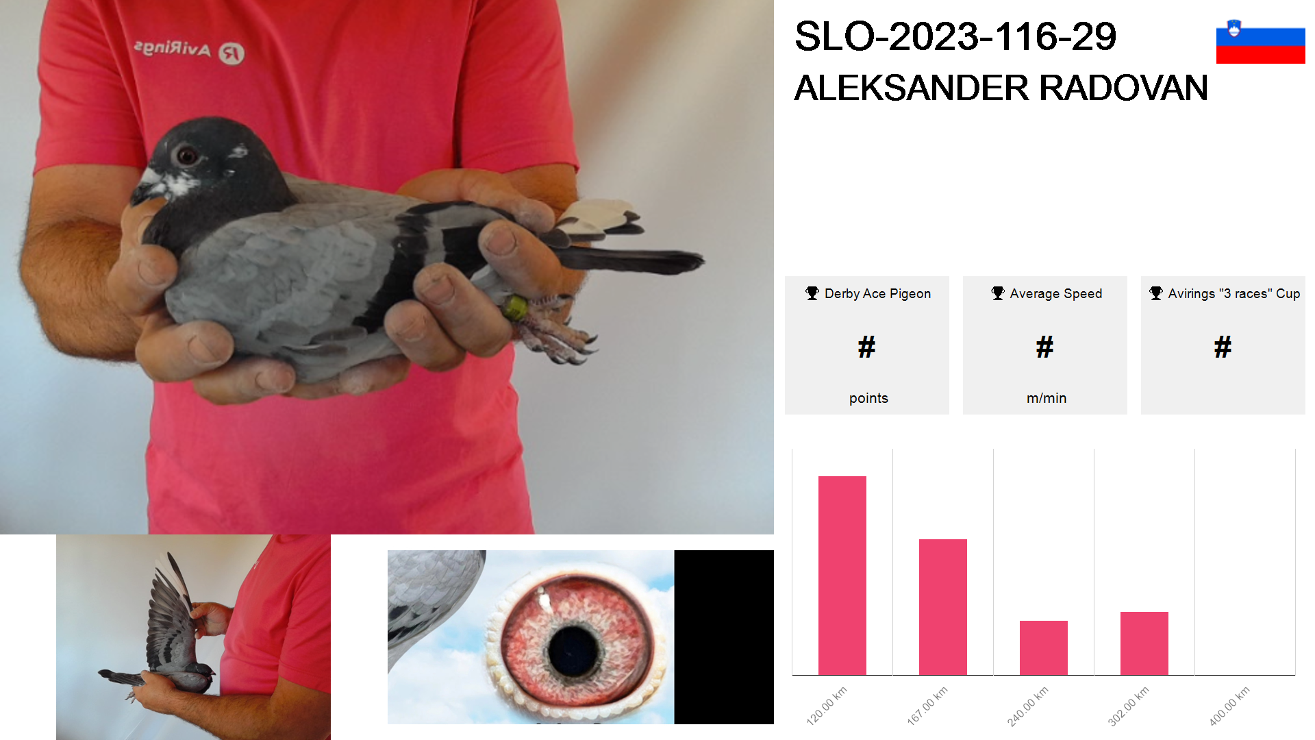 | Race | Position | Number of pigeons | Percent | Speed | Distance |