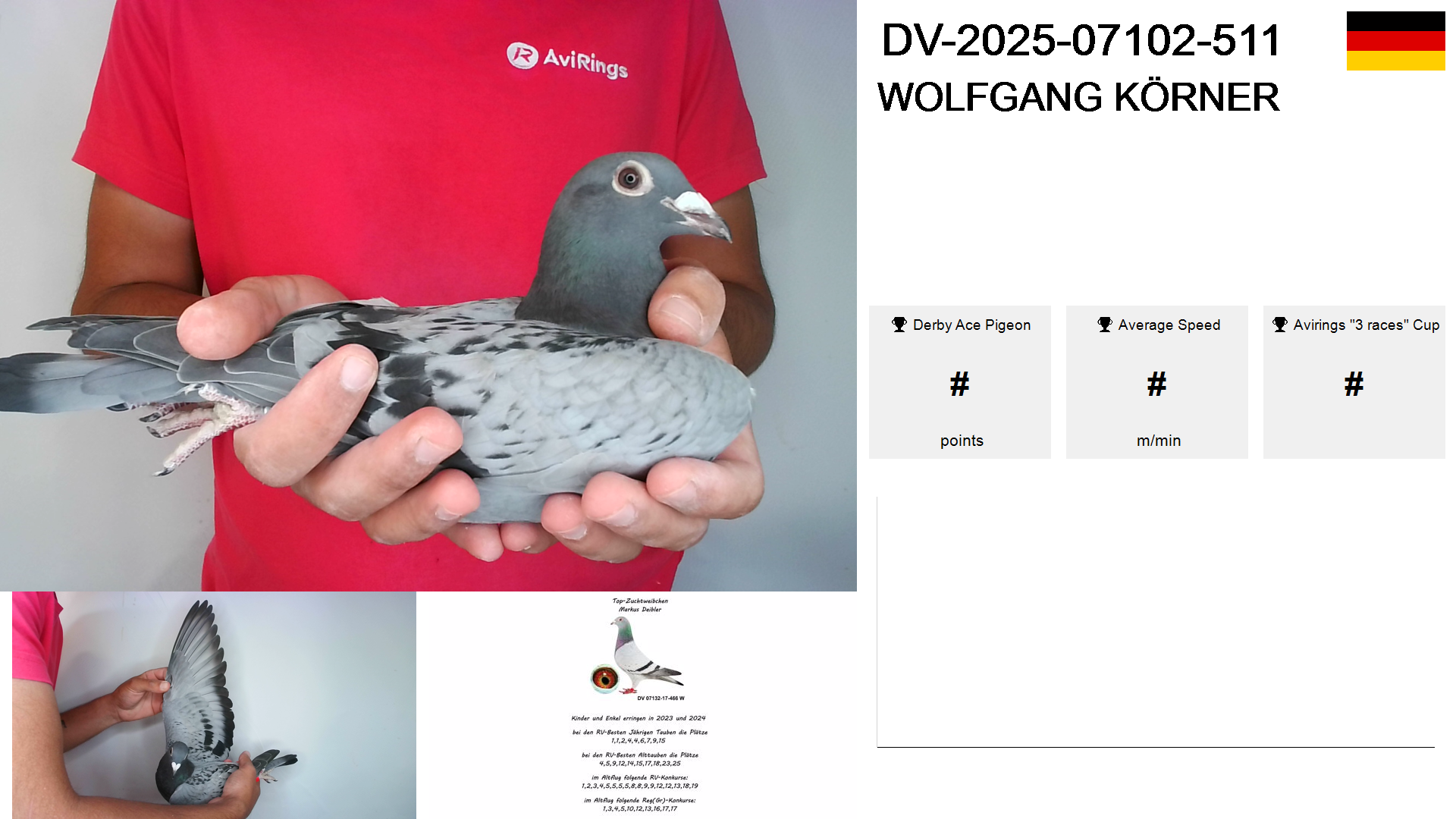 | Race | Position | Number of pigeons | Percent | Speed | Distance |