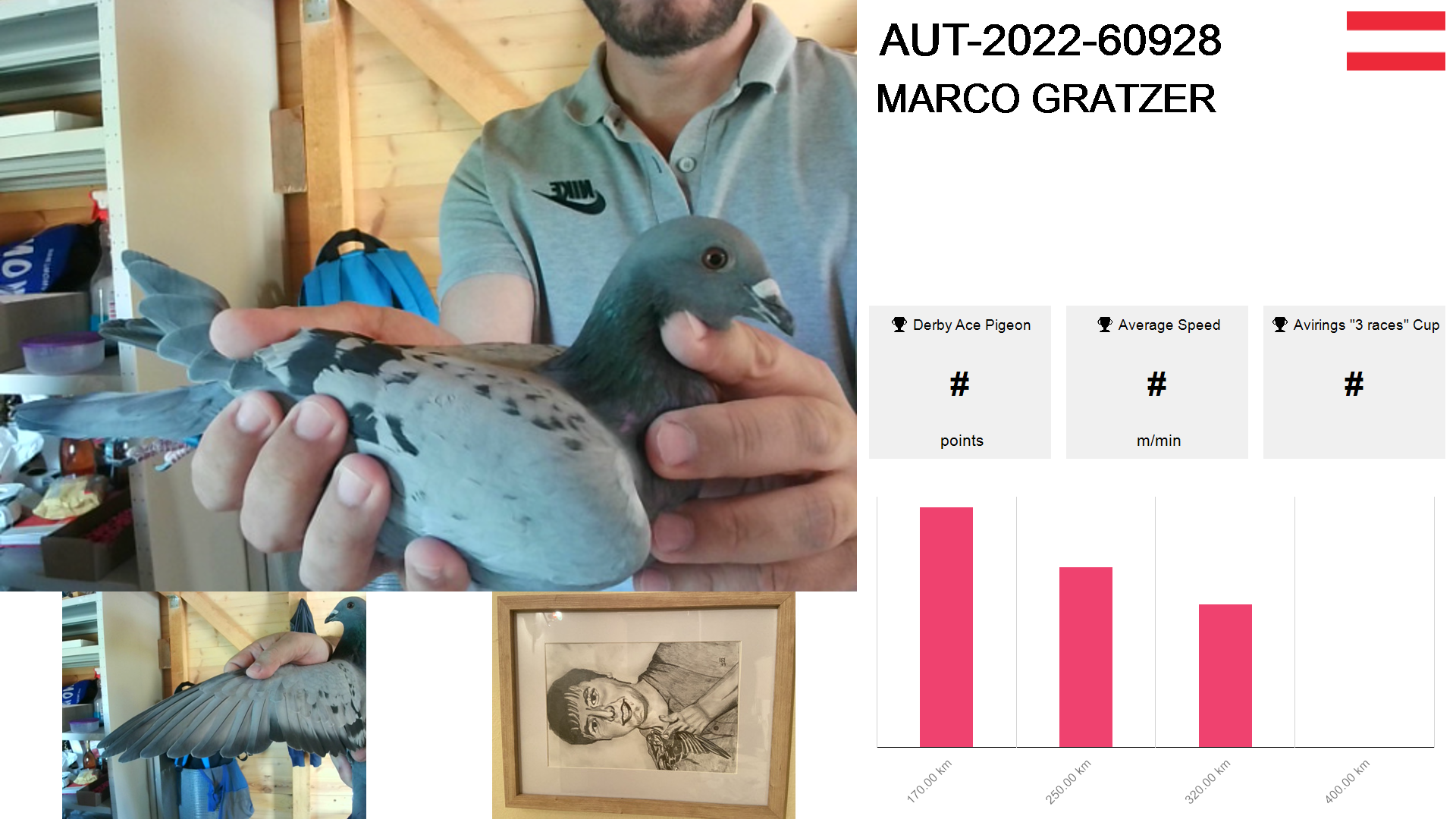 | Race | Position | Number of pigeons | Percent | Speed | Distance |