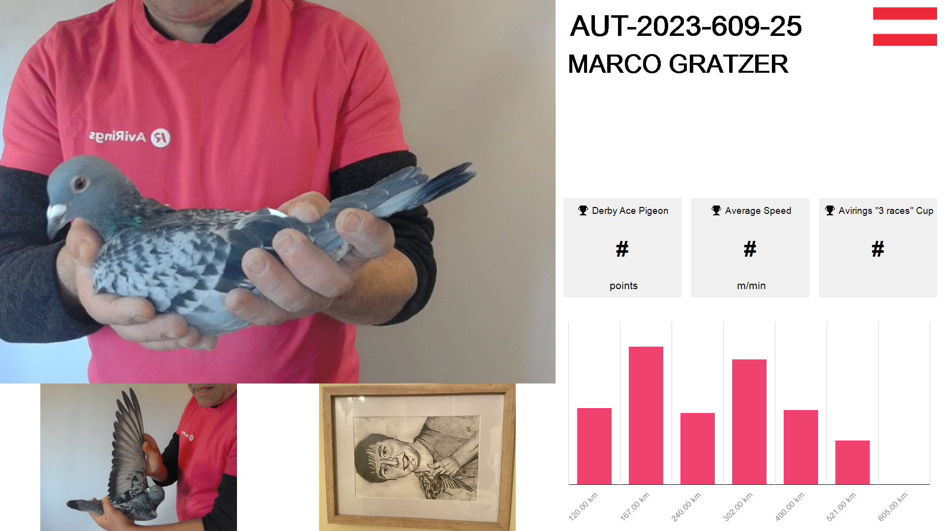 | Race | Position | Number of pigeons | Percent | Speed | Distance |