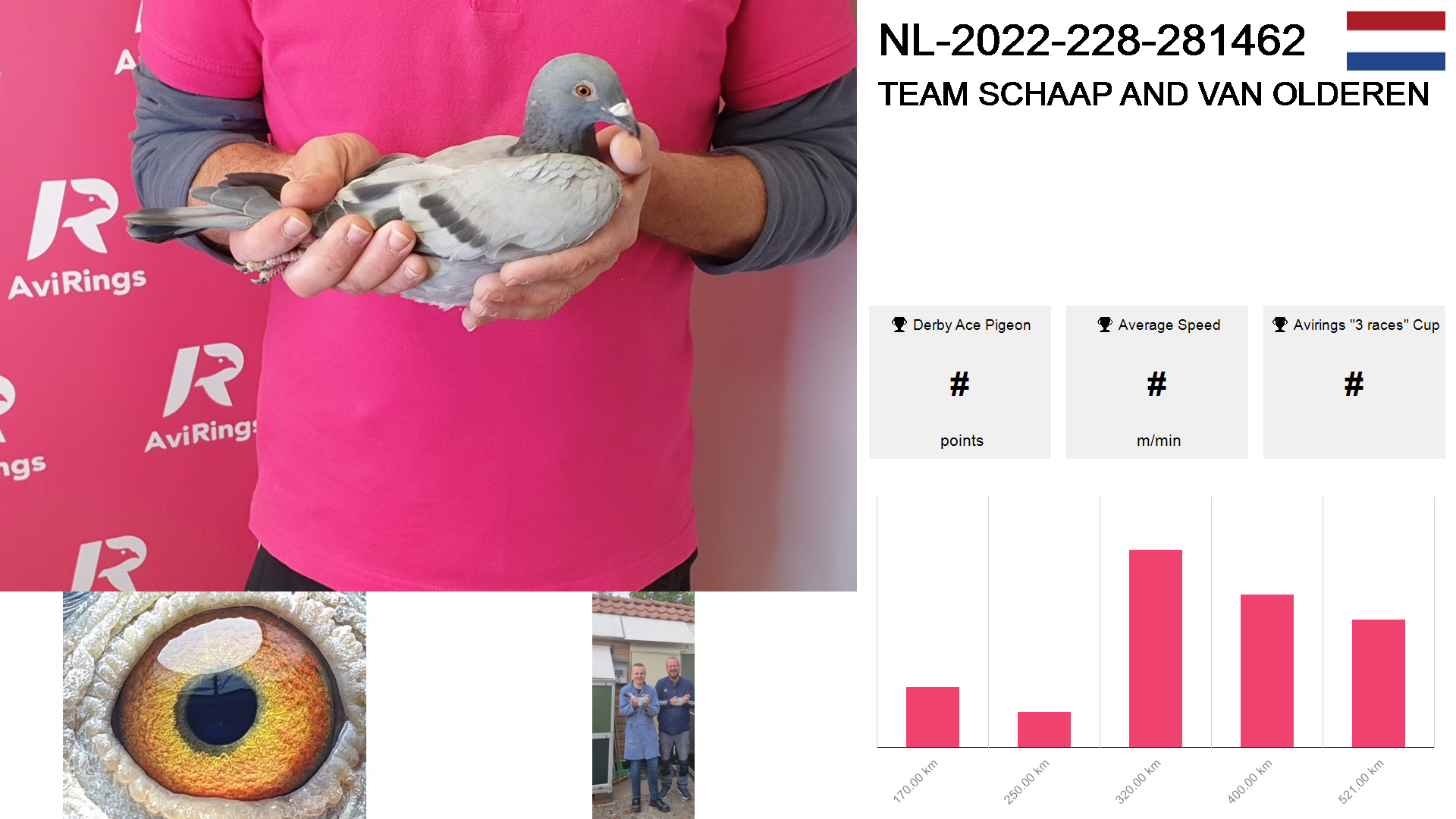 | Race | Position | Number of pigeons | Percent | Speed | Distance |