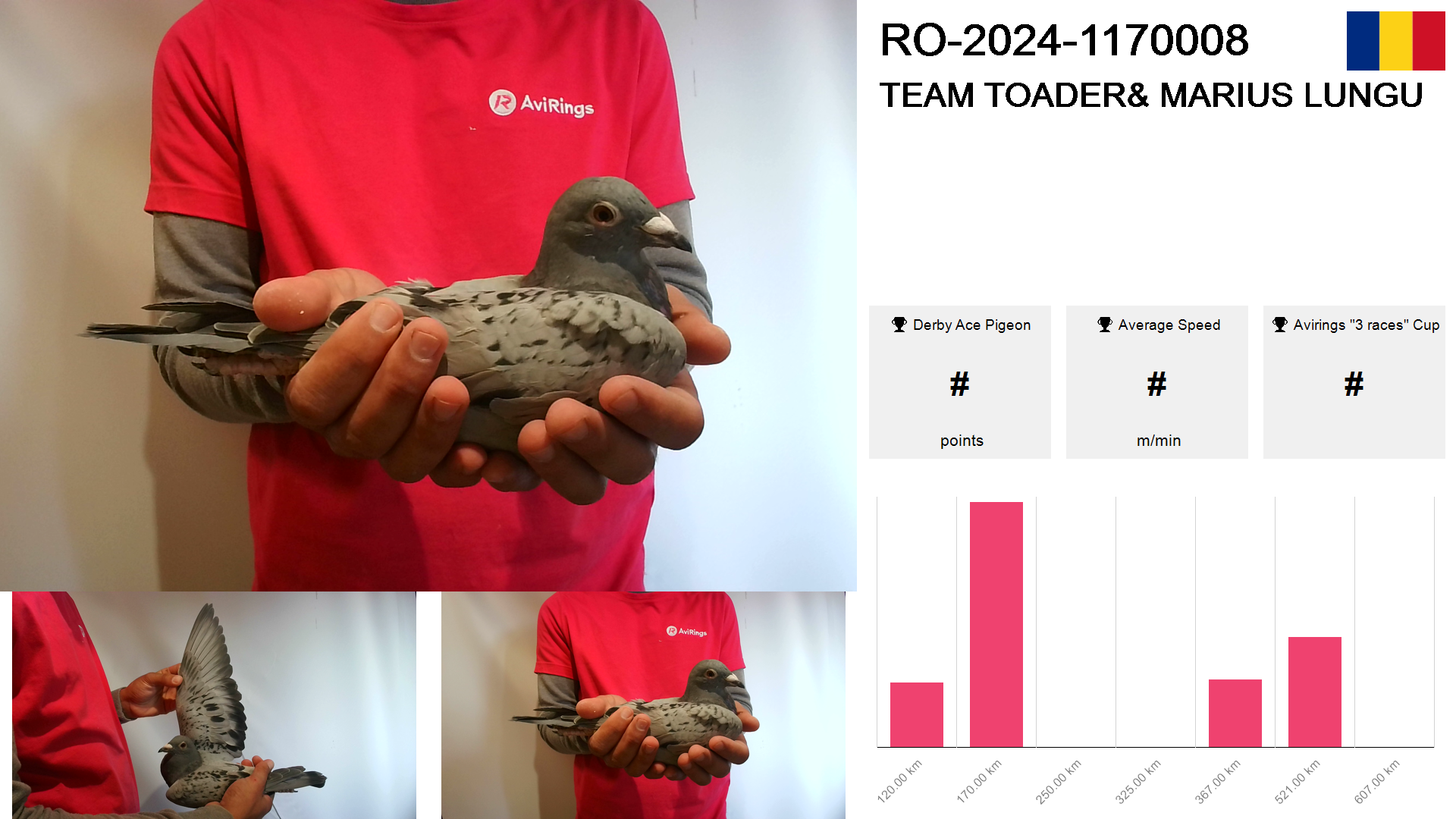 | Race | Position | Number of pigeons | Percent | Speed | Distance |
