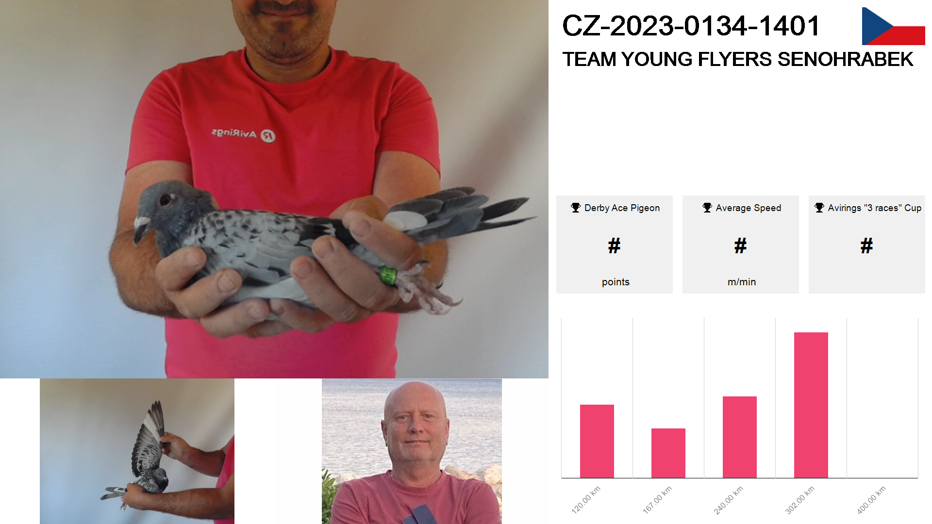 | Race | Position | Number of pigeons | Percent | Speed | Distance |