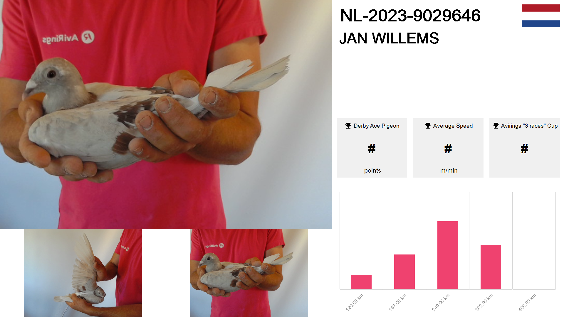 | Race | Position | Number of pigeons | Percent | Speed | Distance |