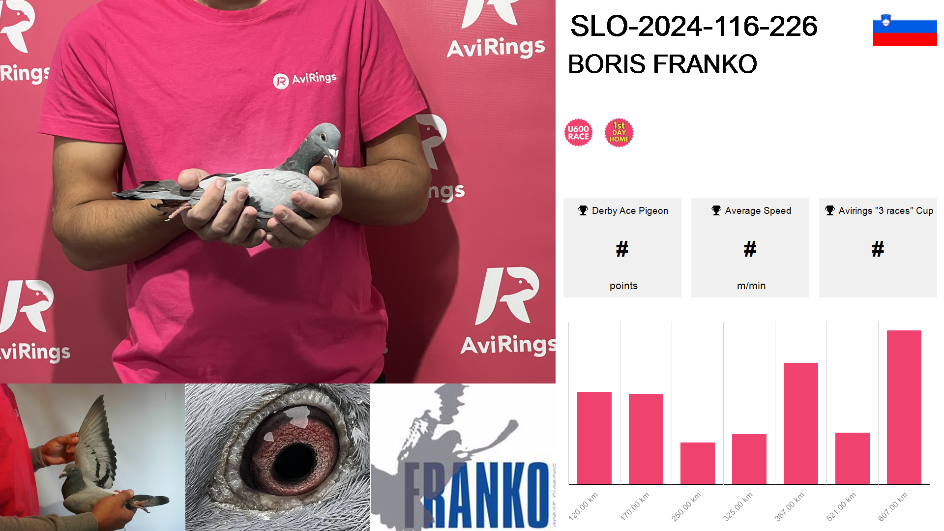 | Race | Position | Number of pigeons | Percent | Speed | Distance |