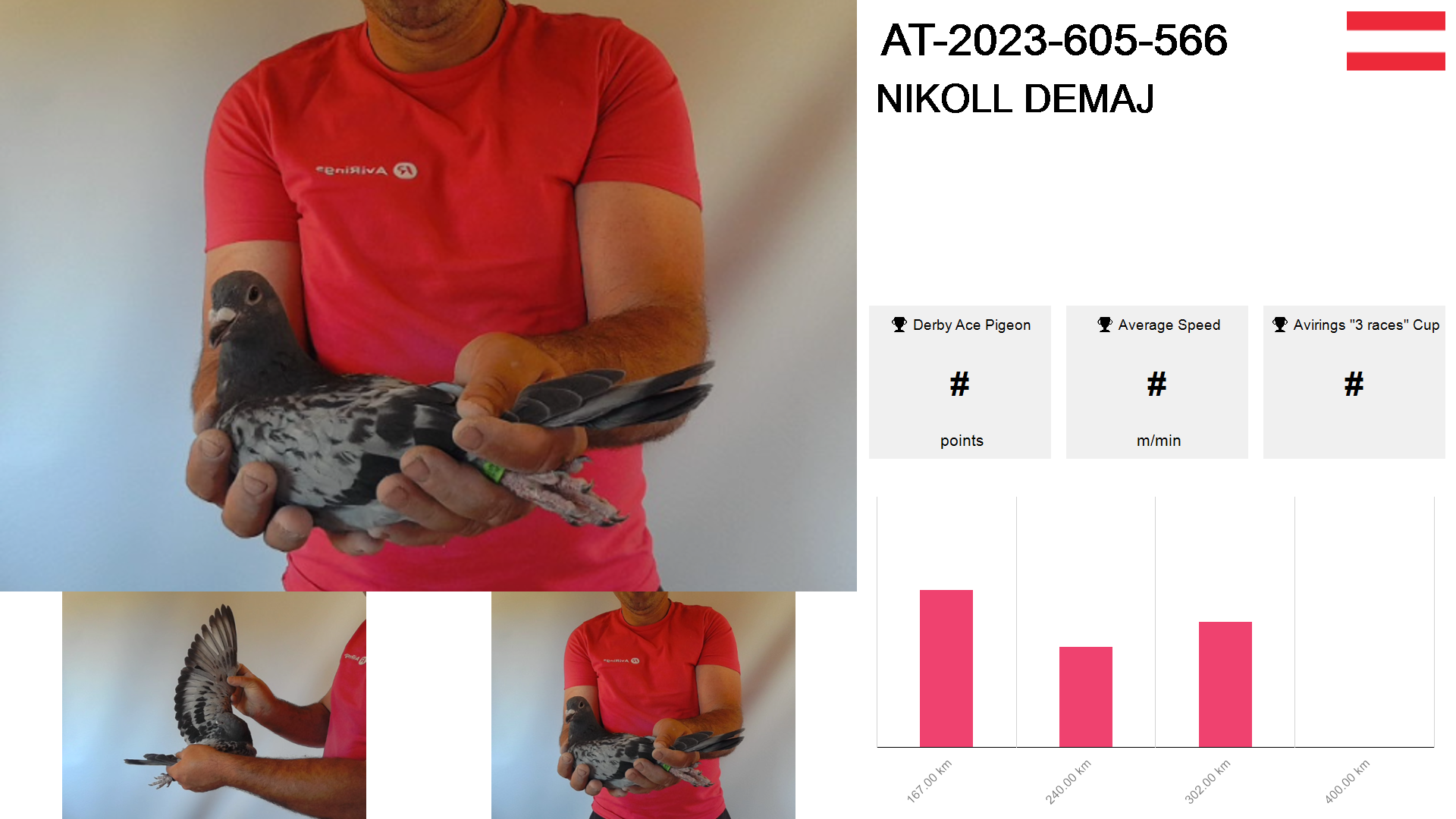 | Race | Position | Number of pigeons | Percent | Speed | Distance |