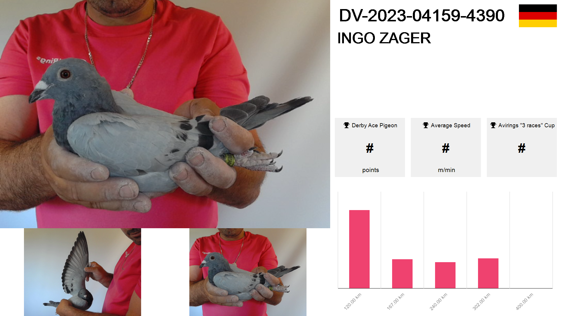 | Race | Position | Number of pigeons | Percent | Speed | Distance |
