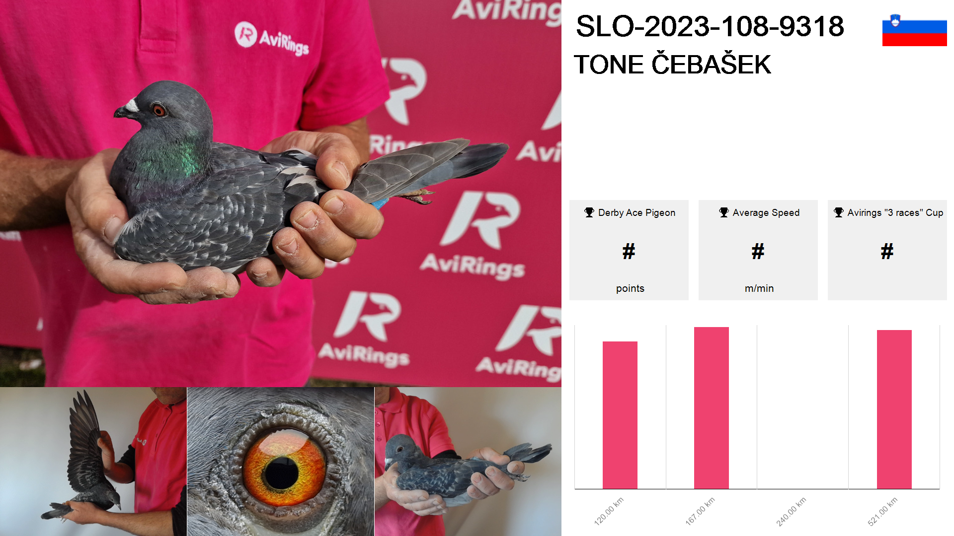 | Race | Position | Number of pigeons | Percent | Speed | Distance |