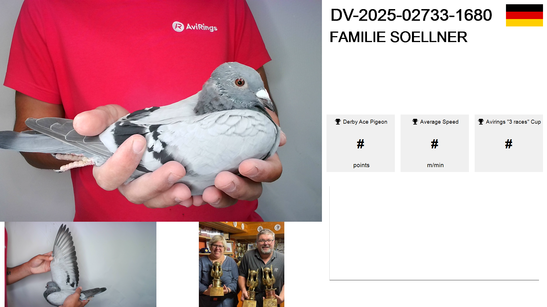 | Race | Position | Number of pigeons | Percent | Speed | Distance |