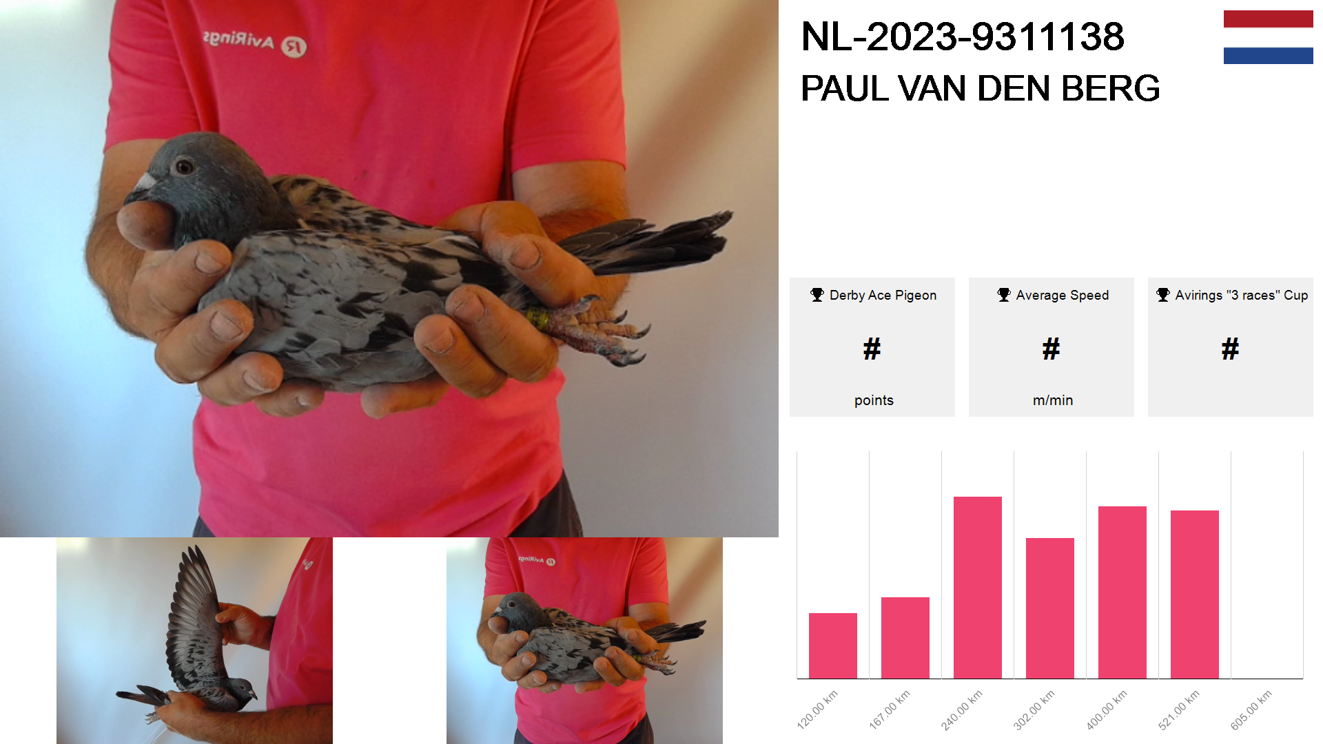 | Race | Position | Number of pigeons | Percent | Speed | Distance |
