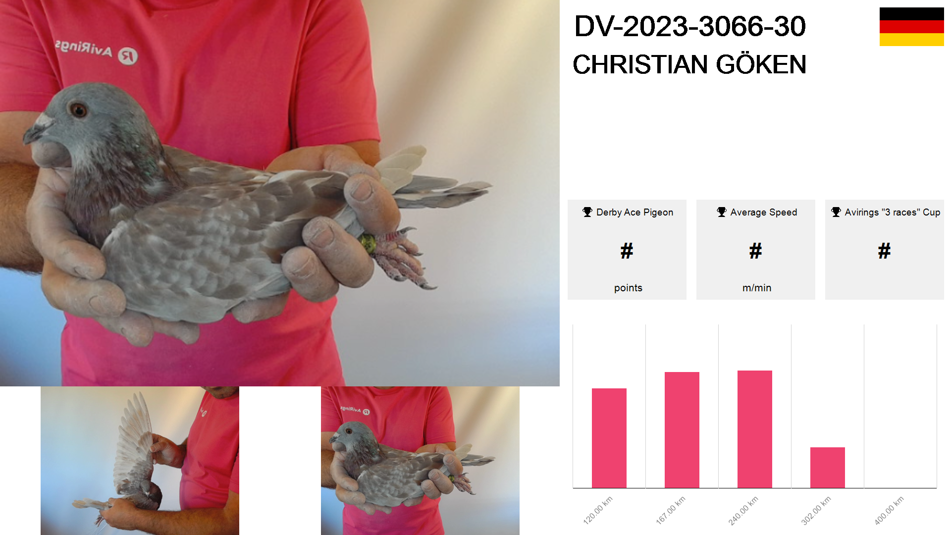 | Race | Position | Number of pigeons | Percent | Speed | Distance |