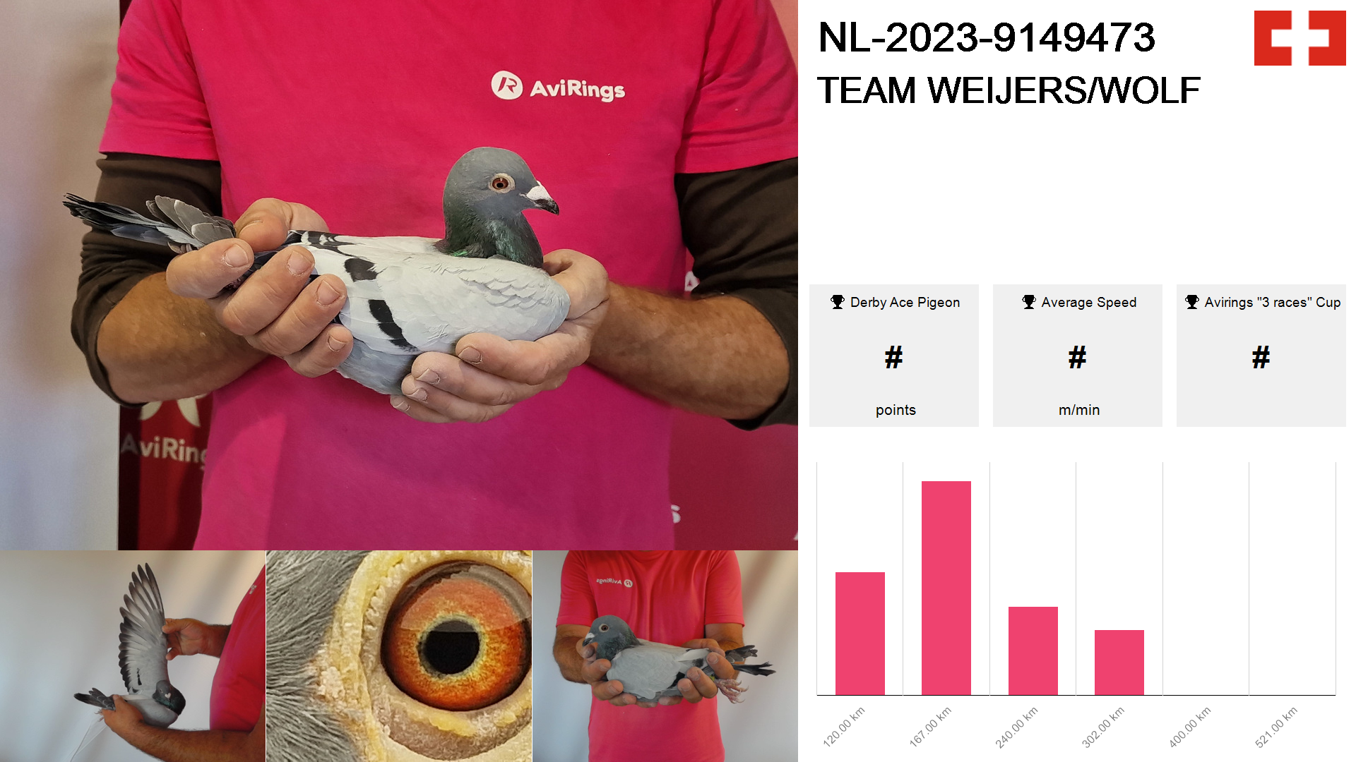| Race | Position | Number of pigeons | Percent | Speed | Distance |