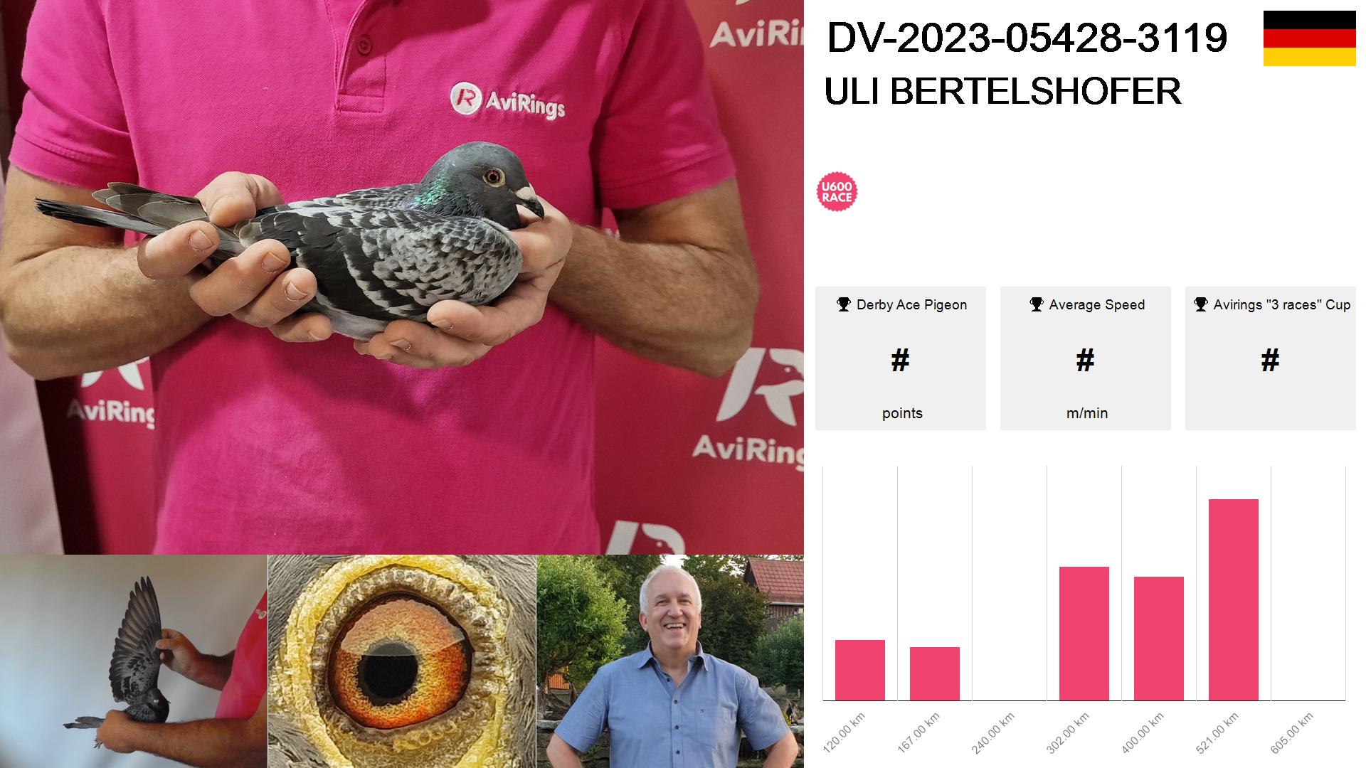 | Race | Position | Number of pigeons | Percent | Speed | Distance |