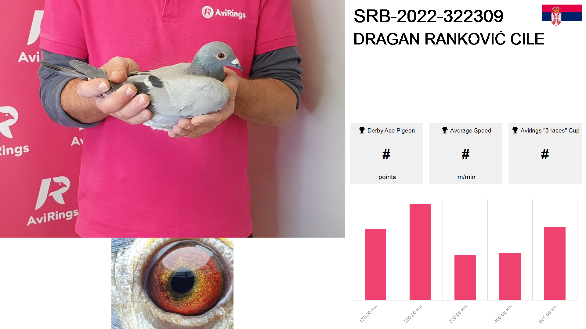 | Race | Position | Number of pigeons | Percent | Speed | Distance |