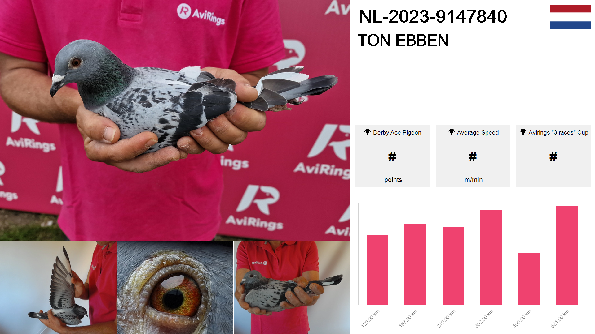 | Race | Position | Number of pigeons | Percent | Speed | Distance |