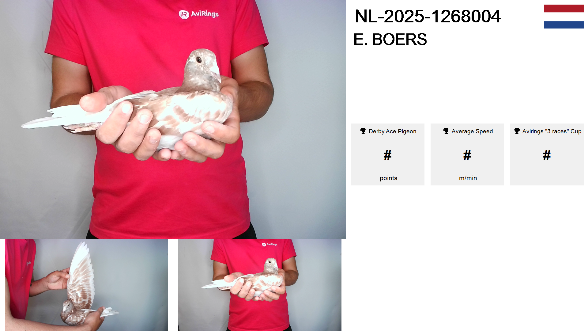 | Race | Position | Number of pigeons | Percent | Speed | Distance |
