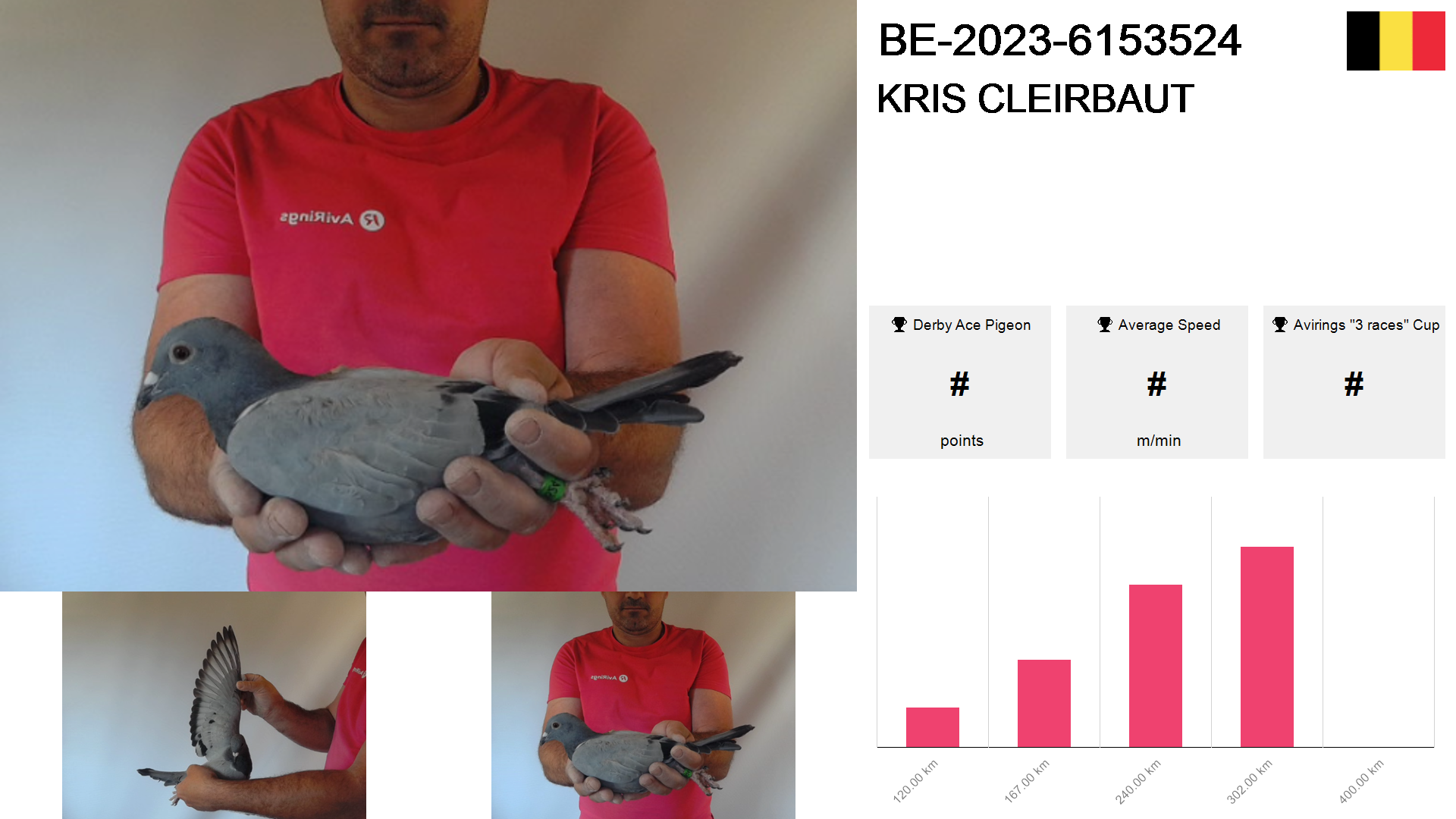 | Race | Position | Number of pigeons | Percent | Speed | Distance |
