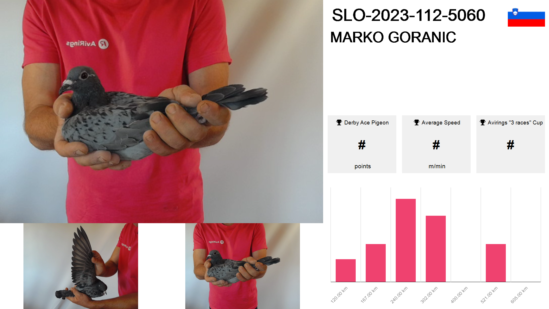| Race | Position | Number of pigeons | Percent | Speed | Distance |