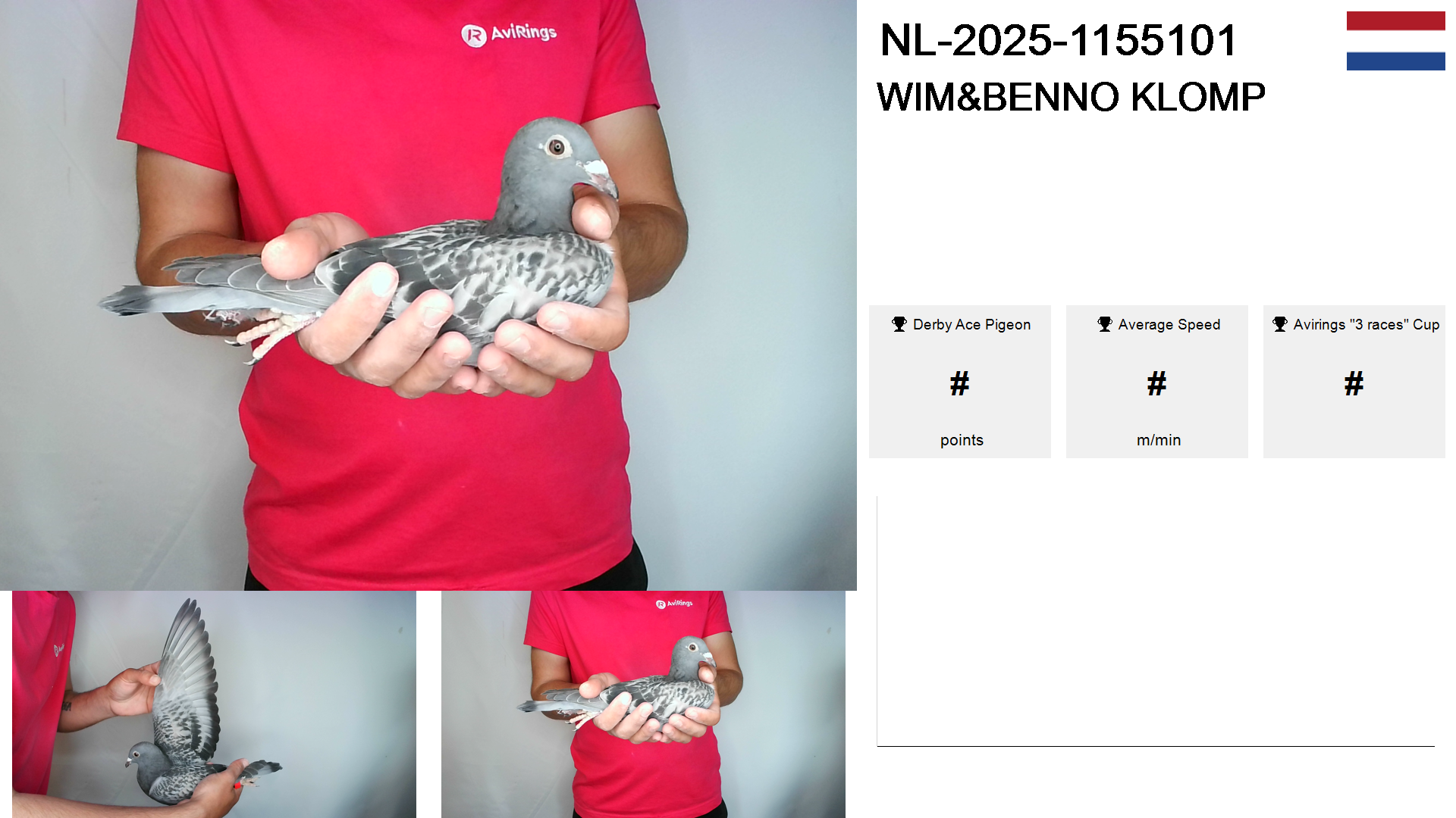 | Race | Position | Number of pigeons | Percent | Speed | Distance |