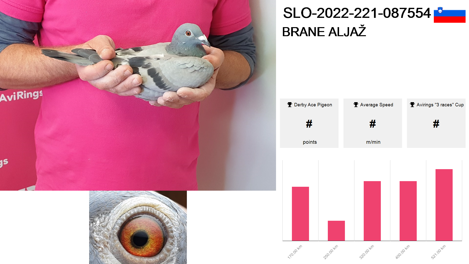 | Race | Position | Number of pigeons | Percent | Speed | Distance |