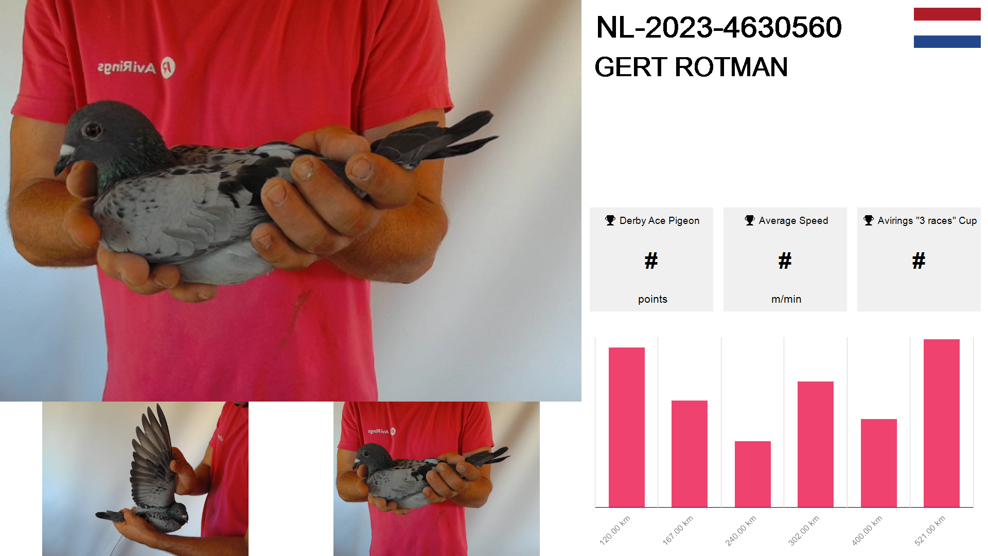 | Race | Position | Number of pigeons | Percent | Speed | Distance |