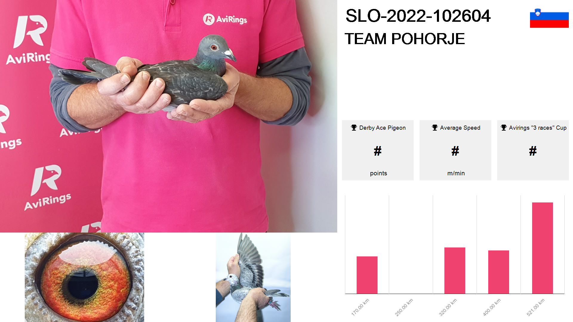 | Race | Position | Number of pigeons | Percent | Speed | Distance |