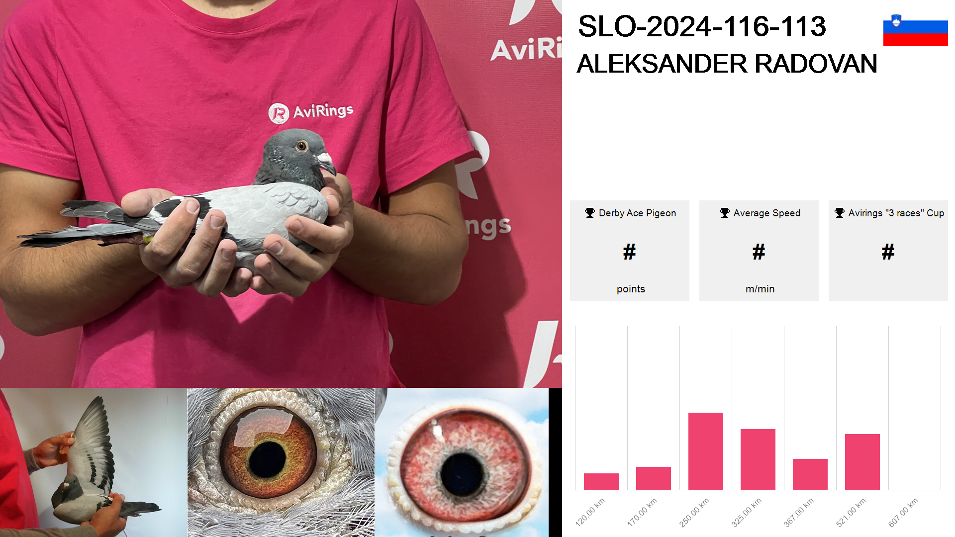 | Race | Position | Number of pigeons | Percent | Speed | Distance |