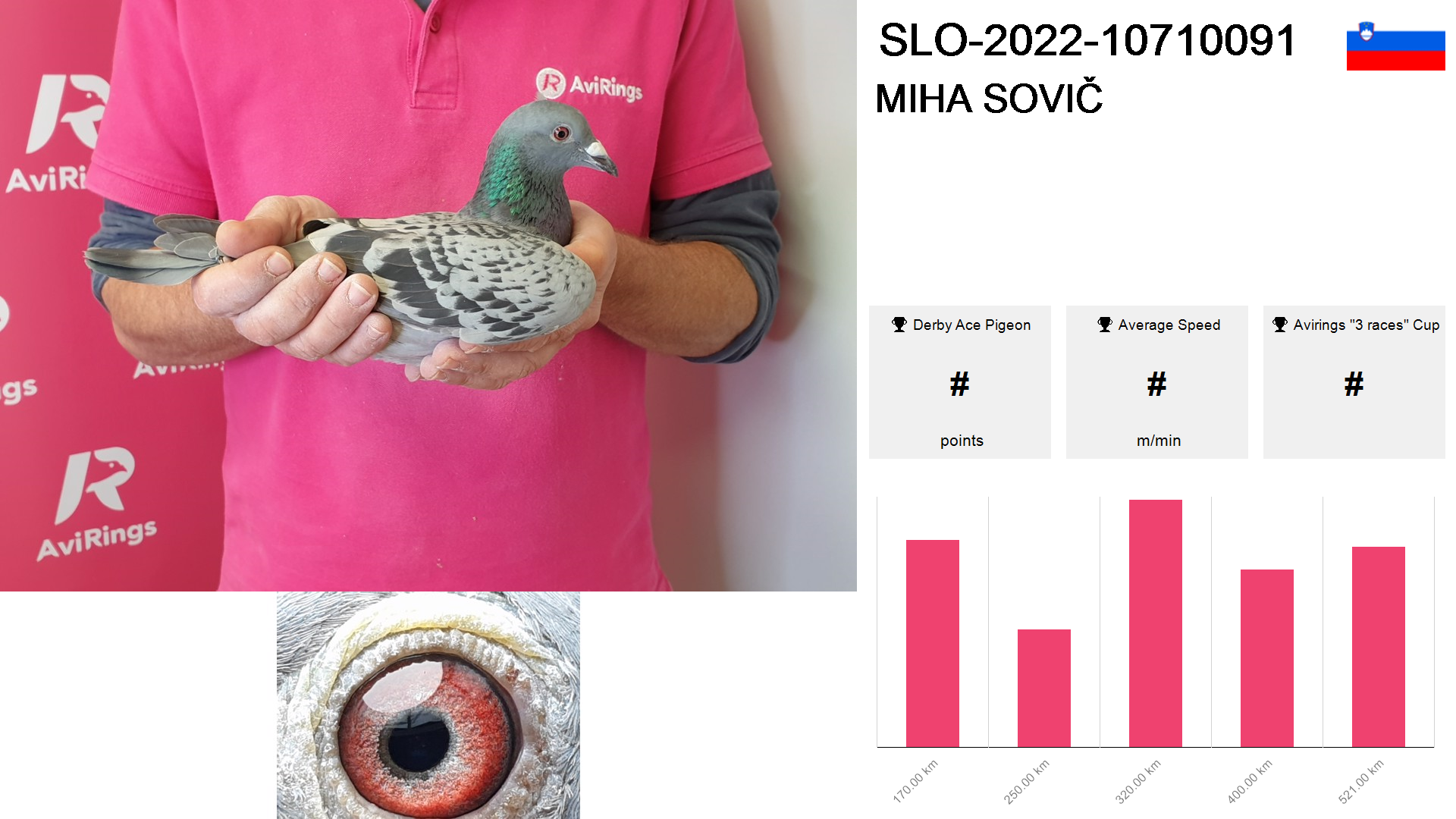 | Race | Position | Number of pigeons | Percent | Speed | Distance |