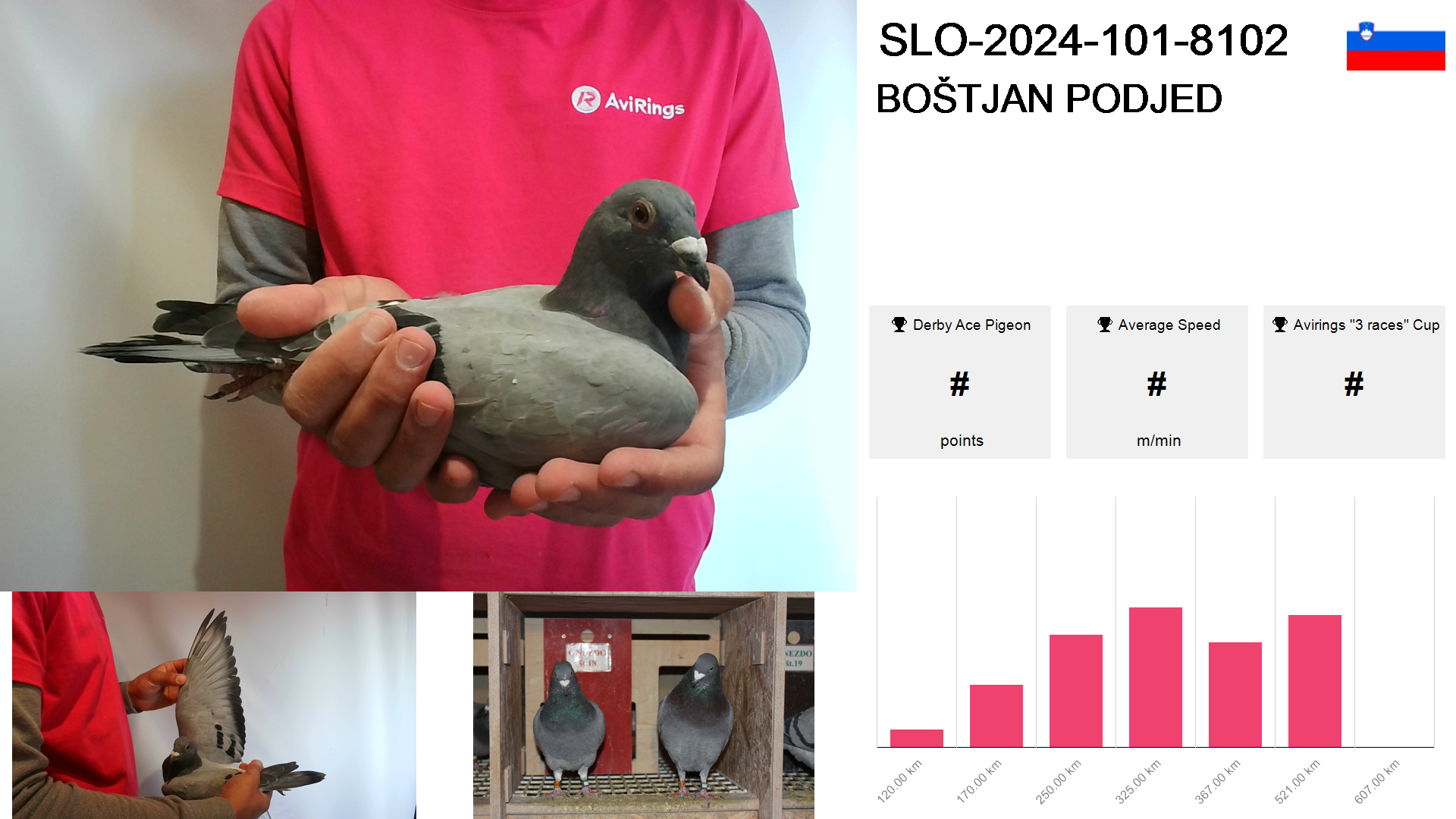 | Race | Position | Number of pigeons | Percent | Speed | Distance |