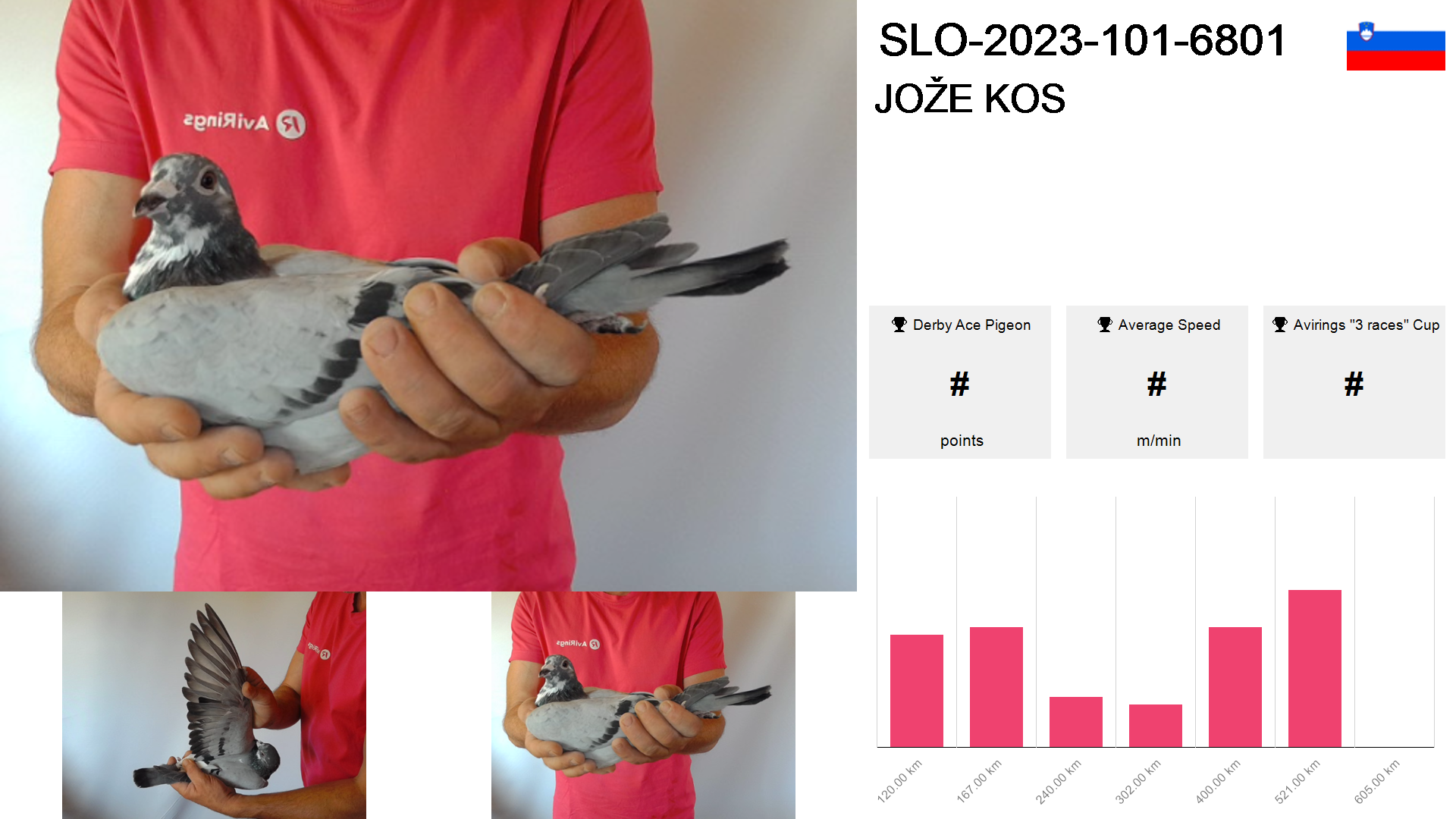 | Race | Position | Number of pigeons | Percent | Speed | Distance |
