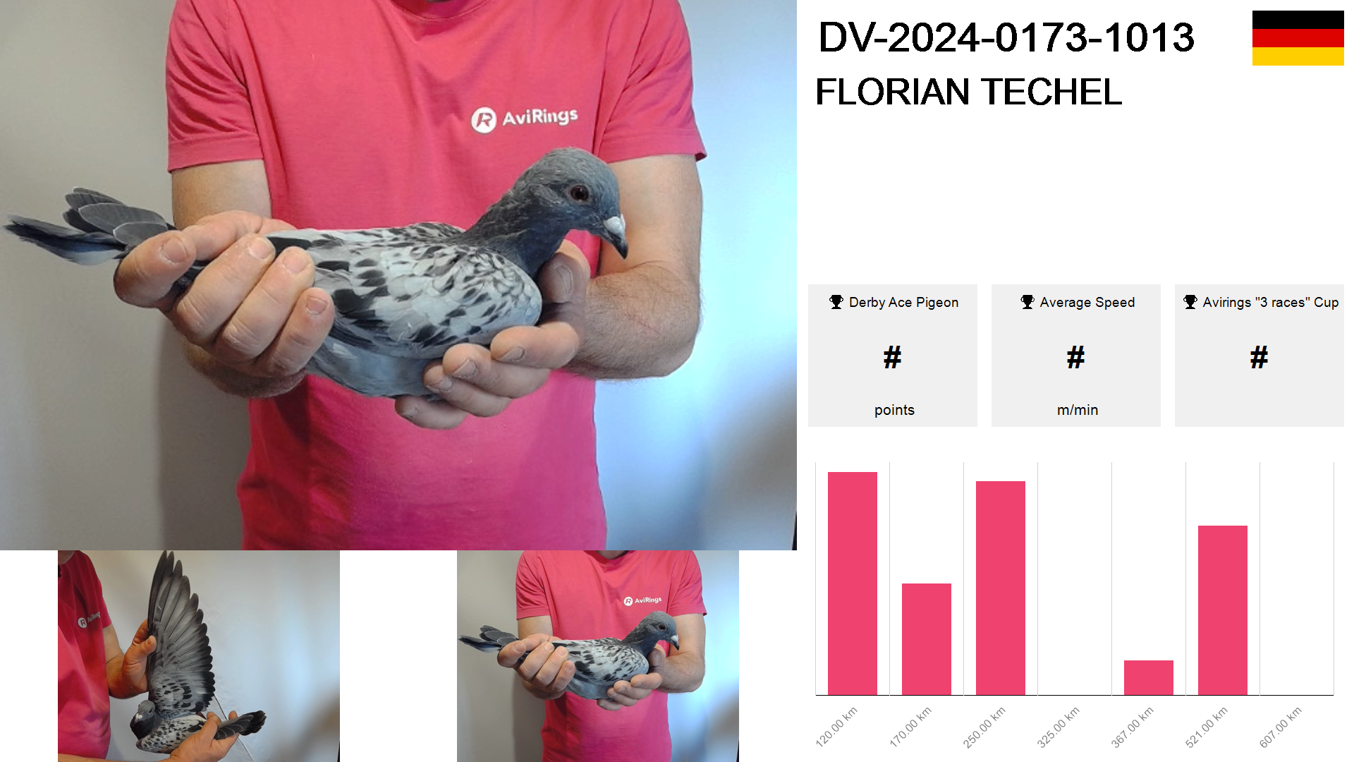 | Race | Position | Number of pigeons | Percent | Speed | Distance |