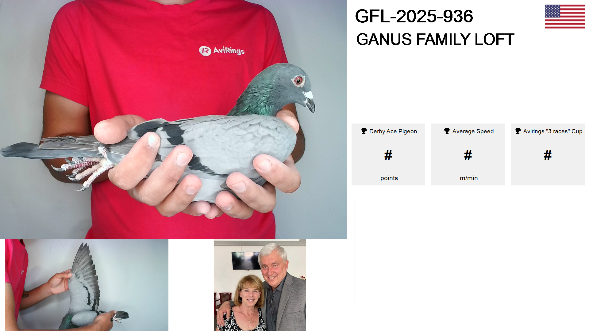 | Race | Position | Number of pigeons | Percent | Speed | Distance |