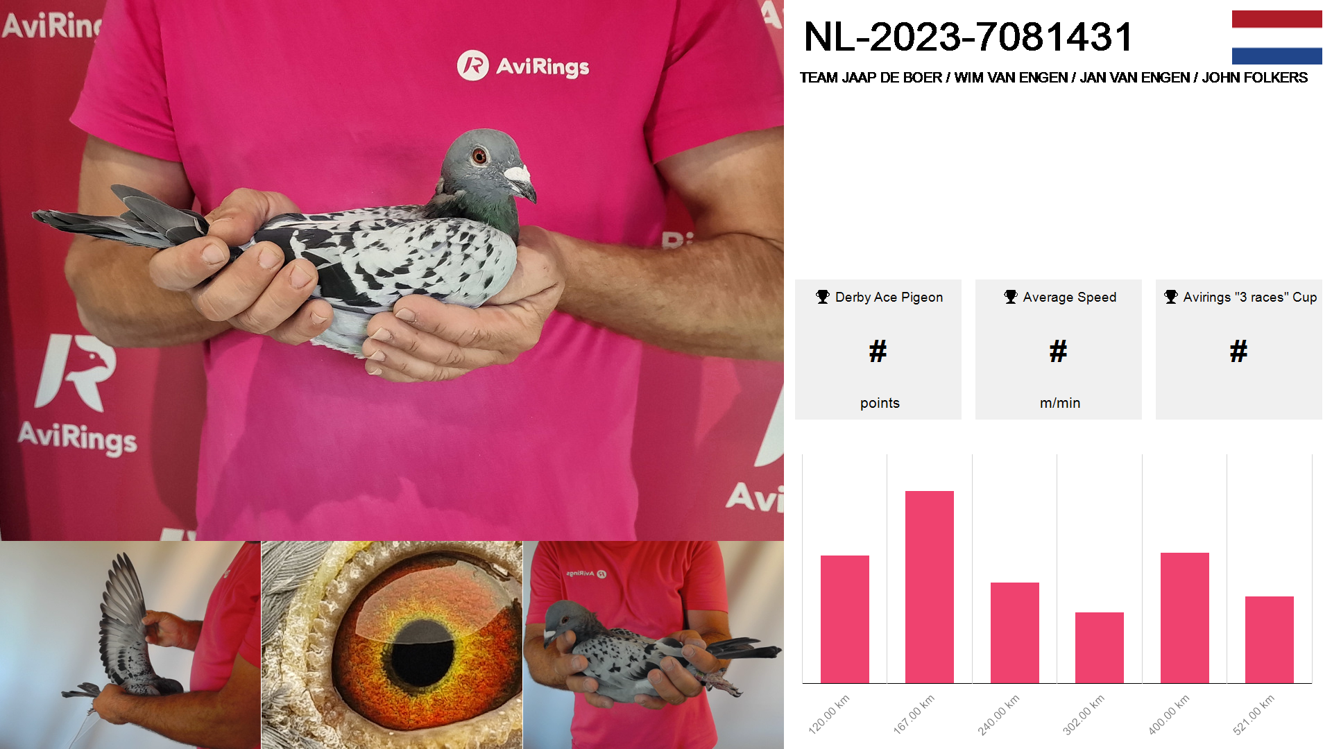 | Race | Position | Number of pigeons | Percent | Speed | Distance |