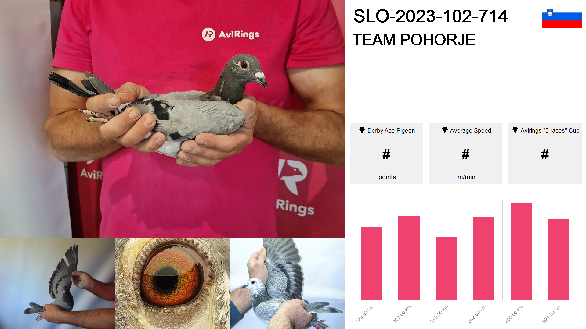 | Race | Position | Number of pigeons | Percent | Speed | Distance |