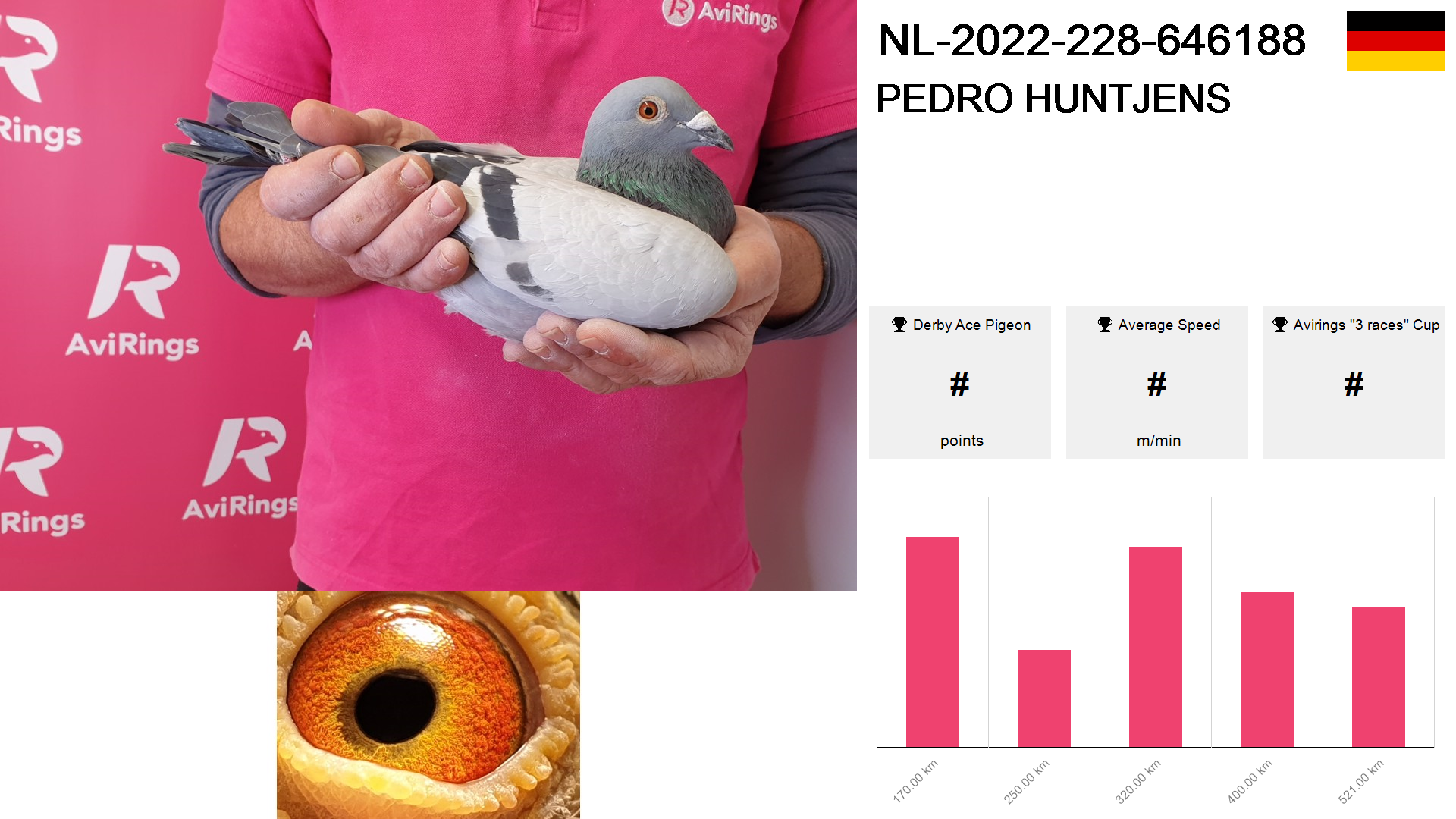 | Race | Position | Number of pigeons | Percent | Speed | Distance |