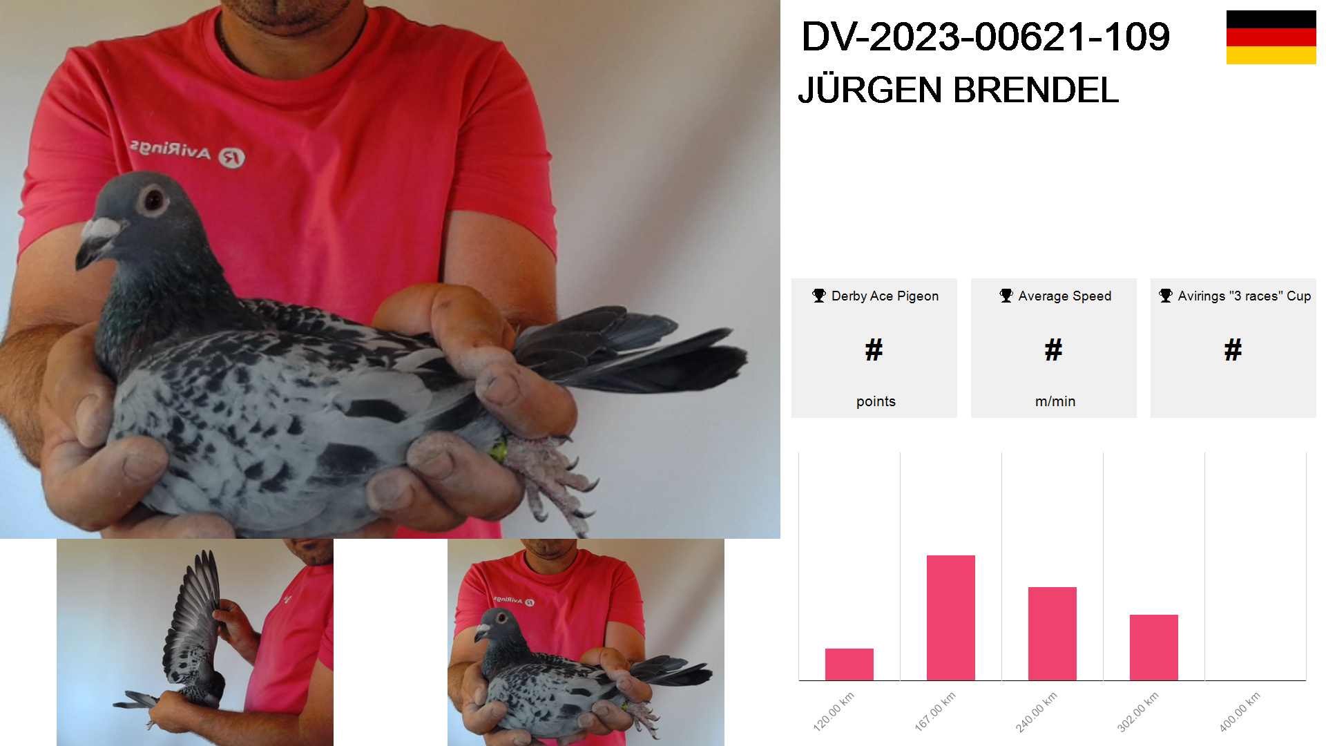 | Race | Position | Number of pigeons | Percent | Speed | Distance |