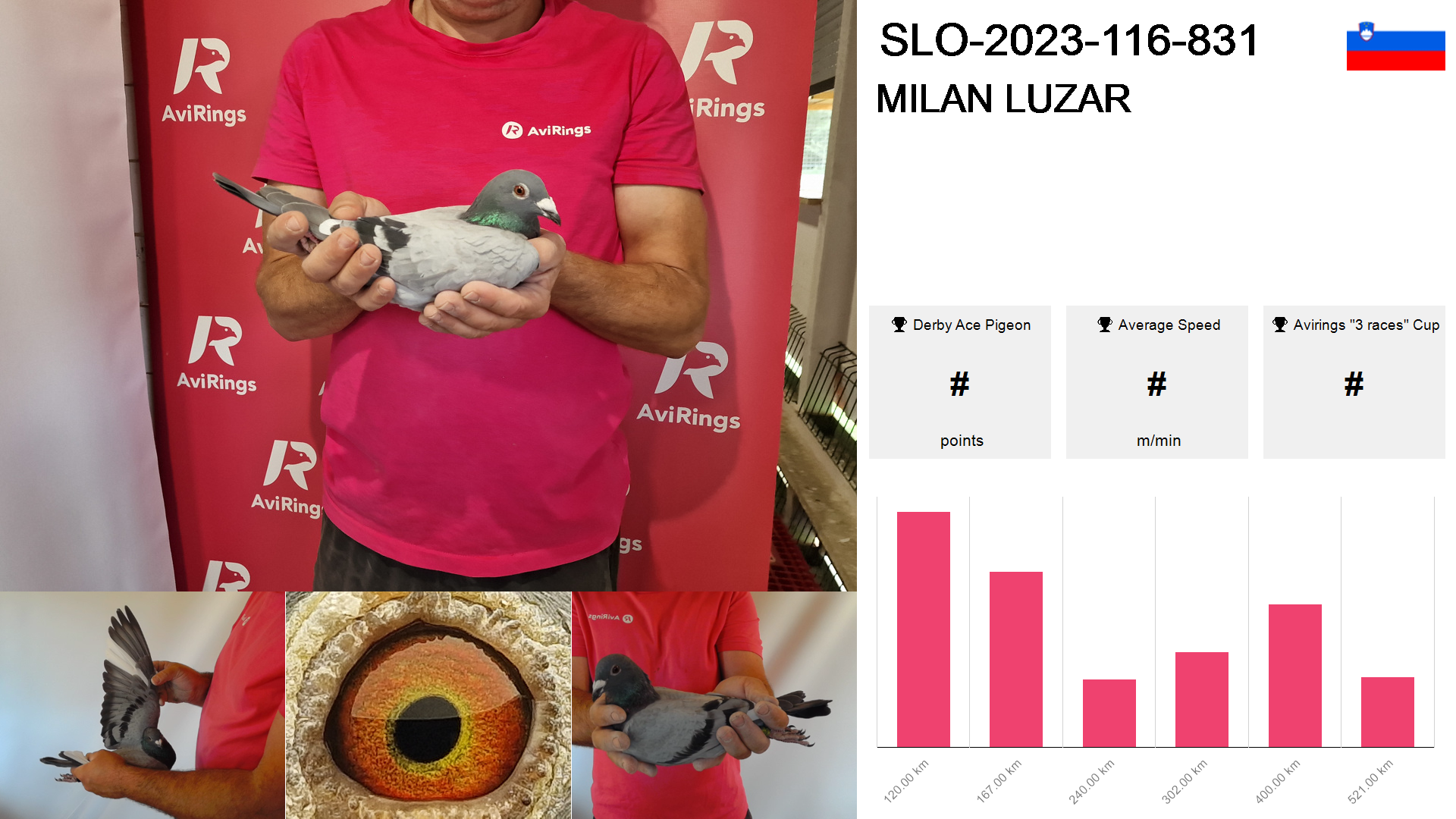 | Race | Position | Number of pigeons | Percent | Speed | Distance |