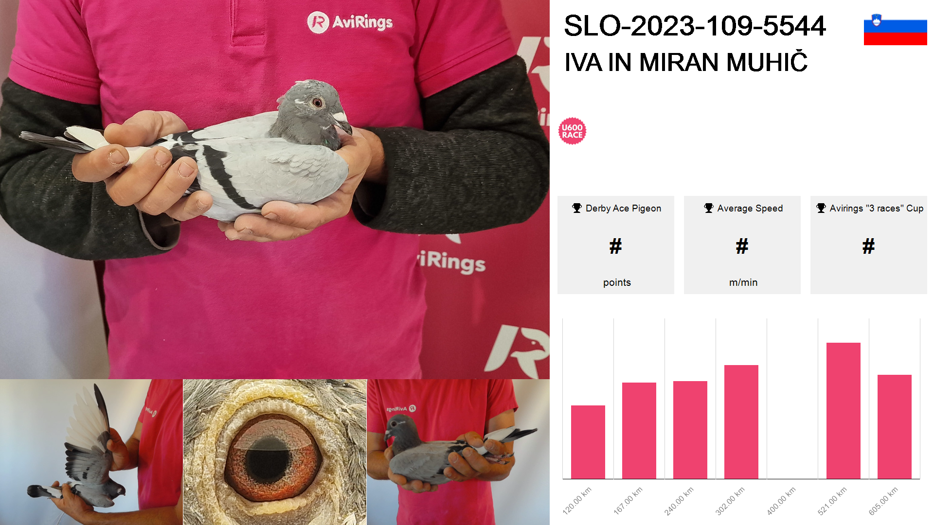| Race | Position | Number of pigeons | Percent | Speed | Distance |