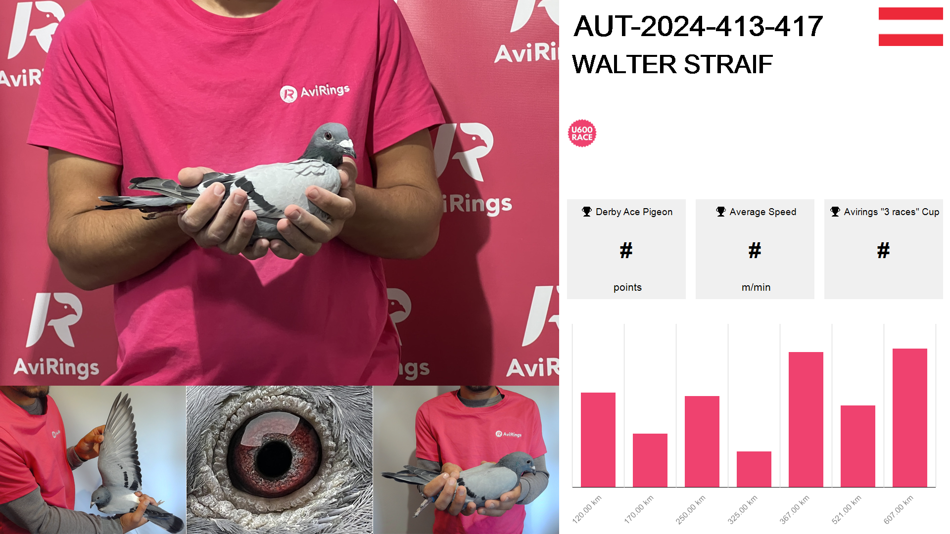 | Race | Position | Number of pigeons | Percent | Speed | Distance |