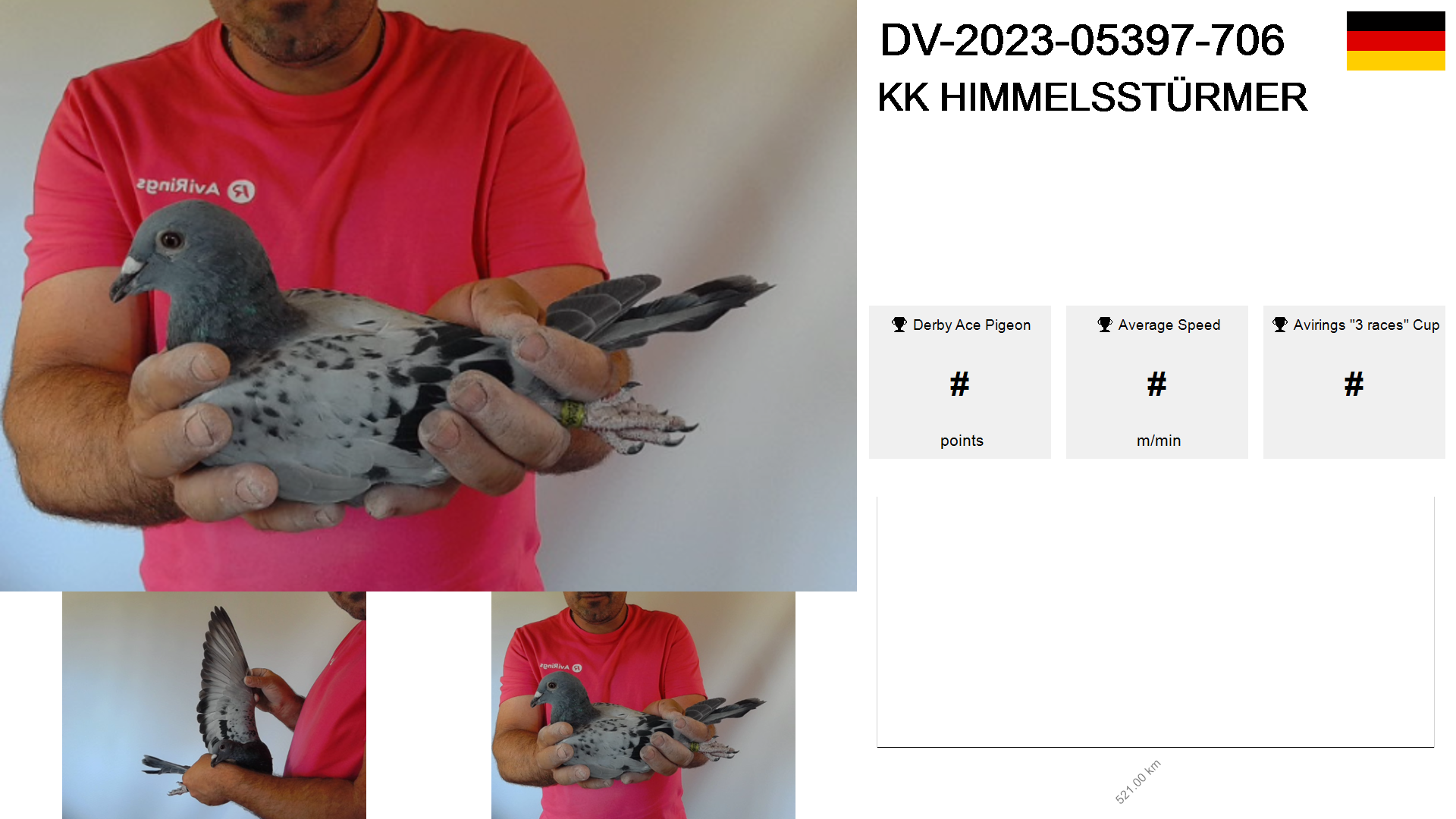 | Race | Position | Number of pigeons | Percent | Speed | Distance |