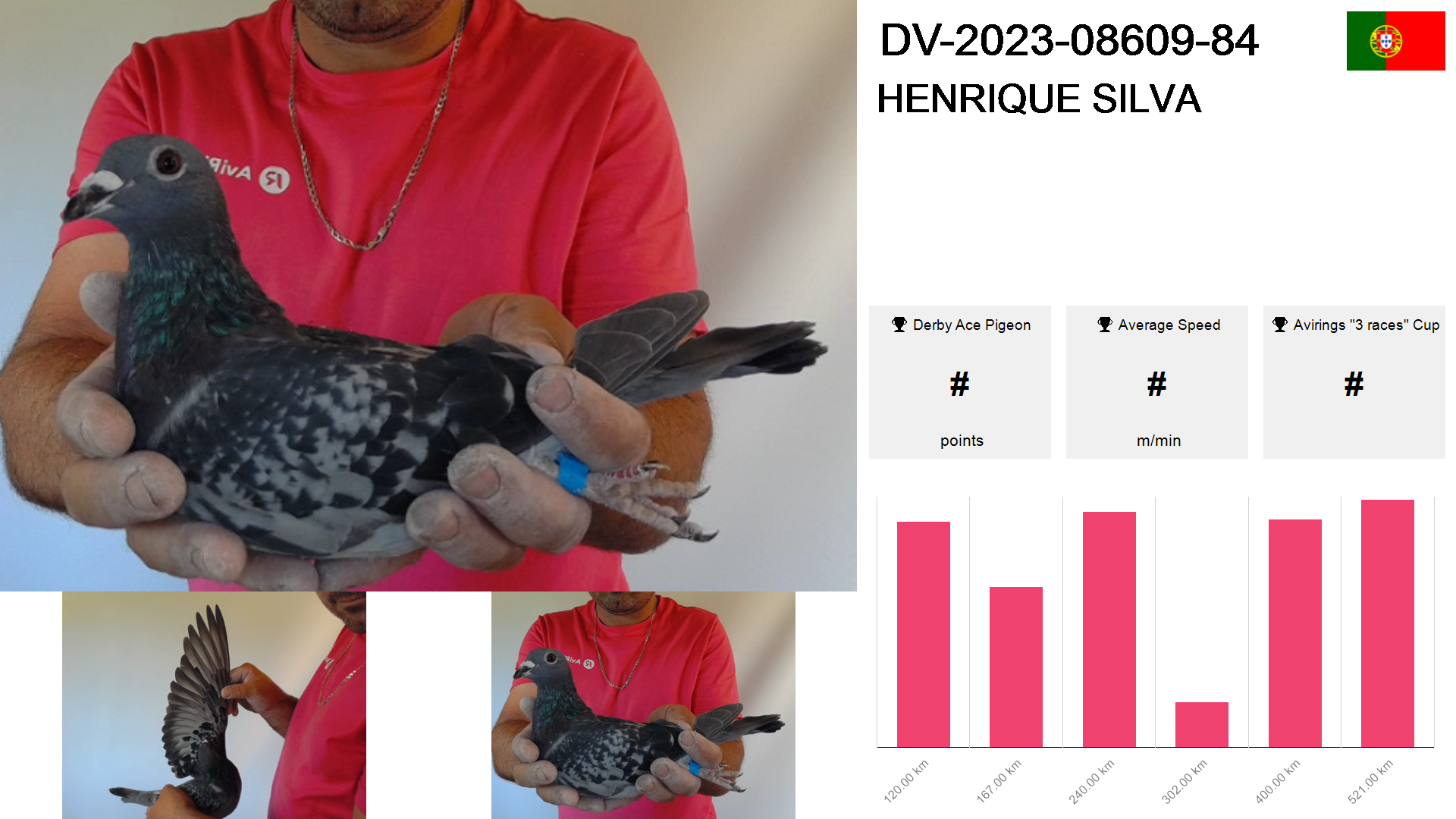 | Race | Position | Number of pigeons | Percent | Speed | Distance |
