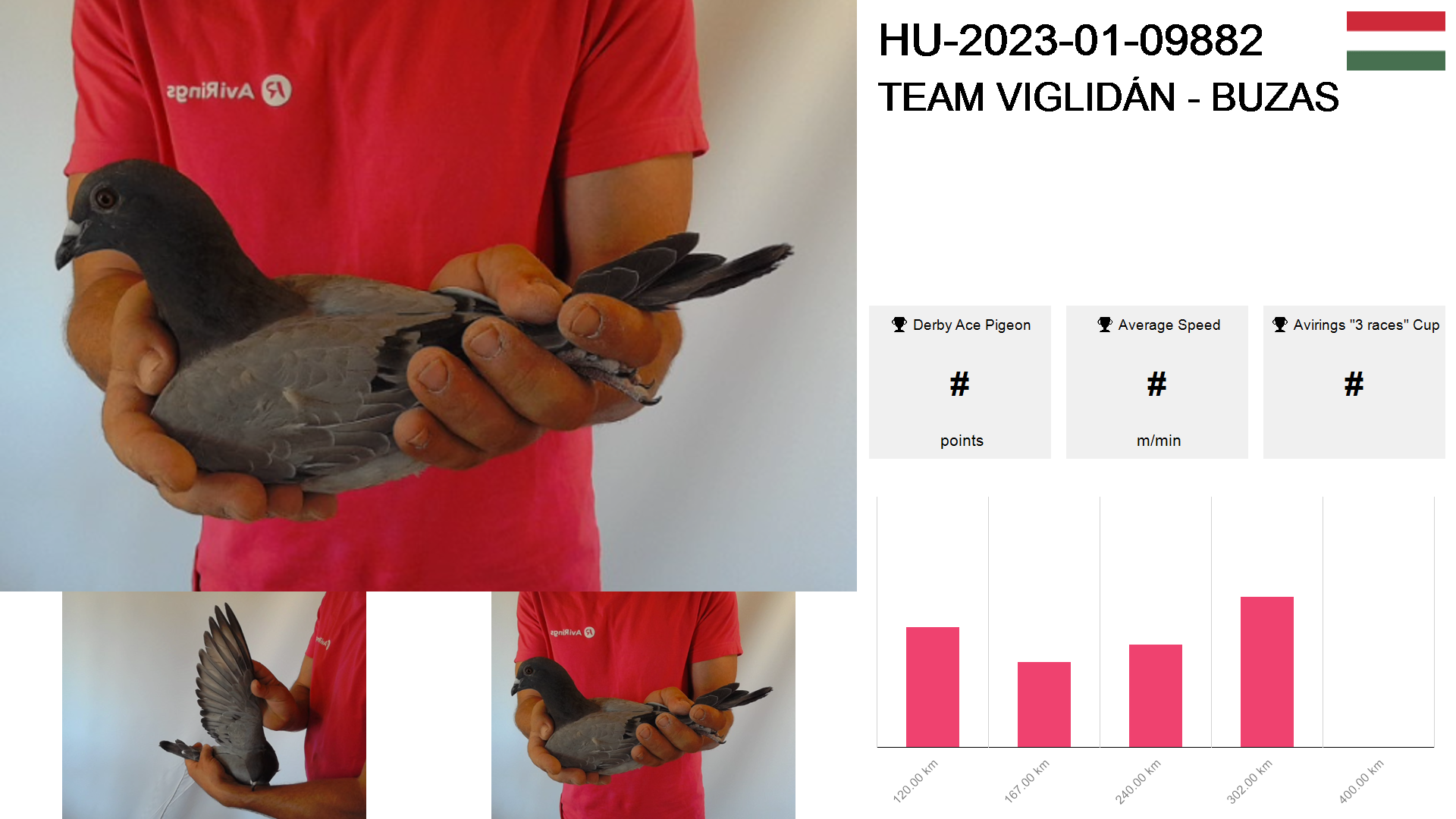| Race | Position | Number of pigeons | Percent | Speed | Distance |