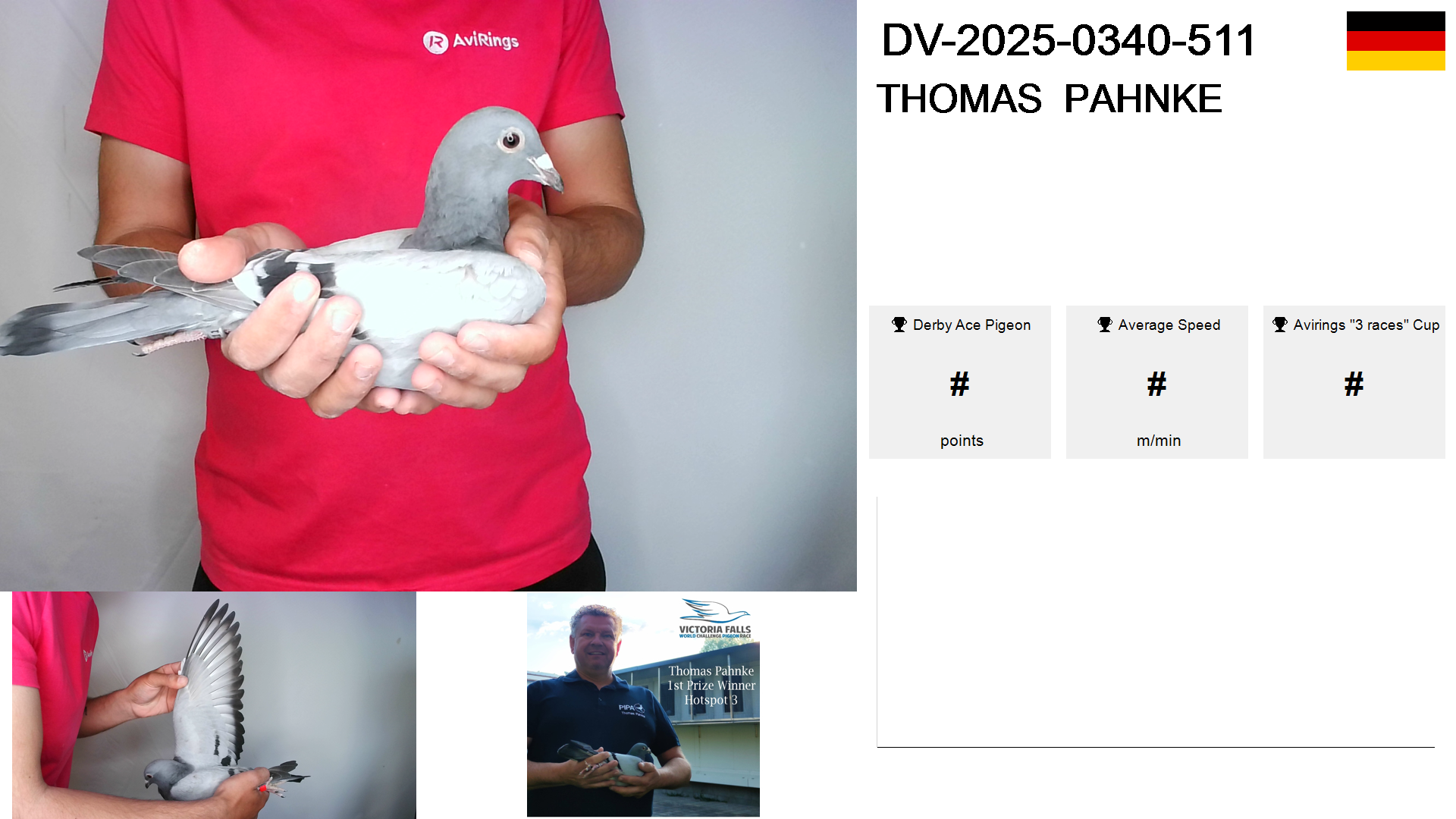 | Race | Position | Number of pigeons | Percent | Speed | Distance |