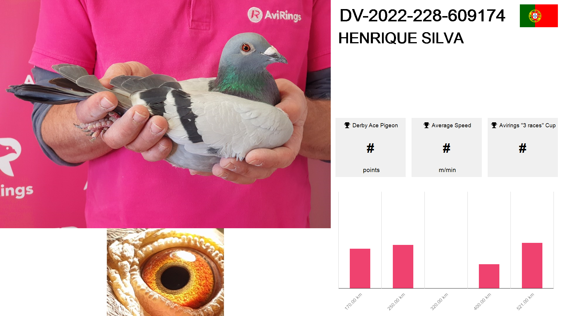 | Race | Position | Number of pigeons | Percent | Speed | Distance |