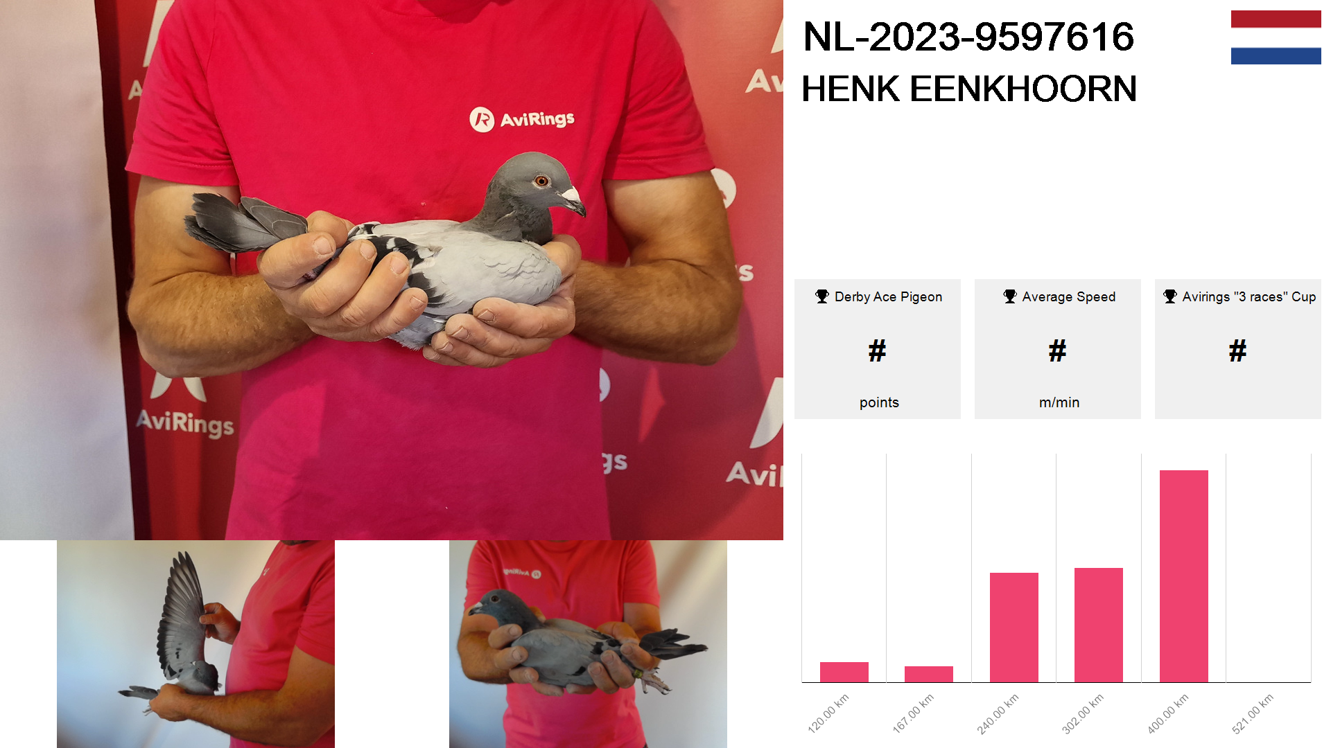 | Race | Position | Number of pigeons | Percent | Speed | Distance |