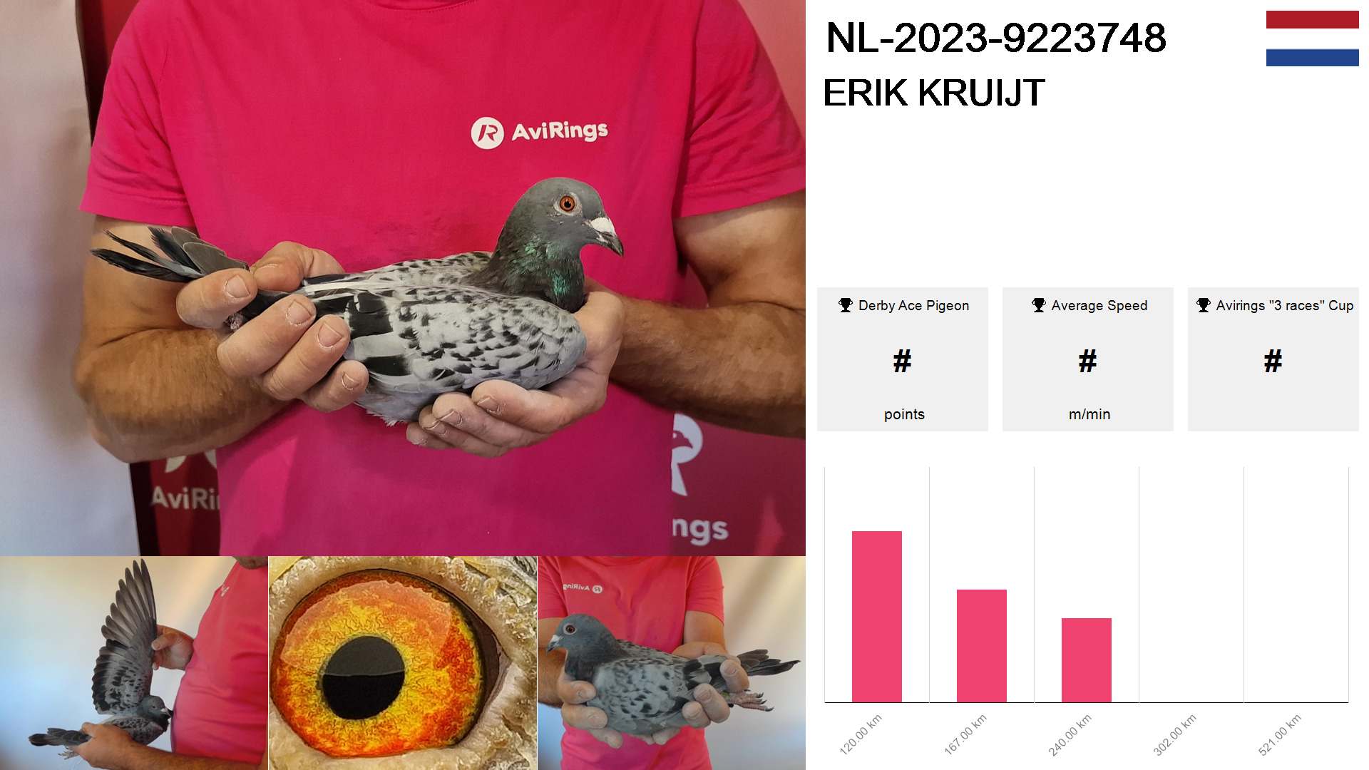 | Race | Position | Number of pigeons | Percent | Speed | Distance |