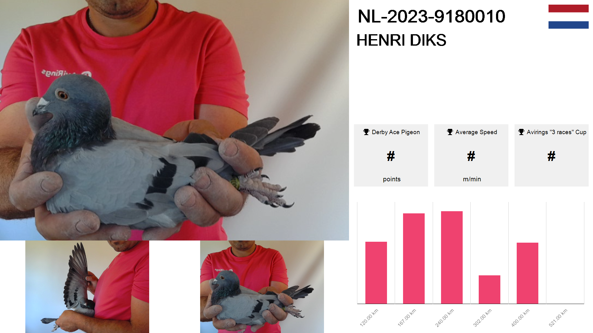 | Race | Position | Number of pigeons | Percent | Speed | Distance |