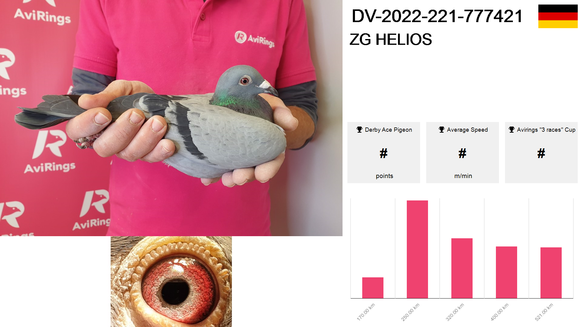 | Race | Position | Number of pigeons | Percent | Speed | Distance |