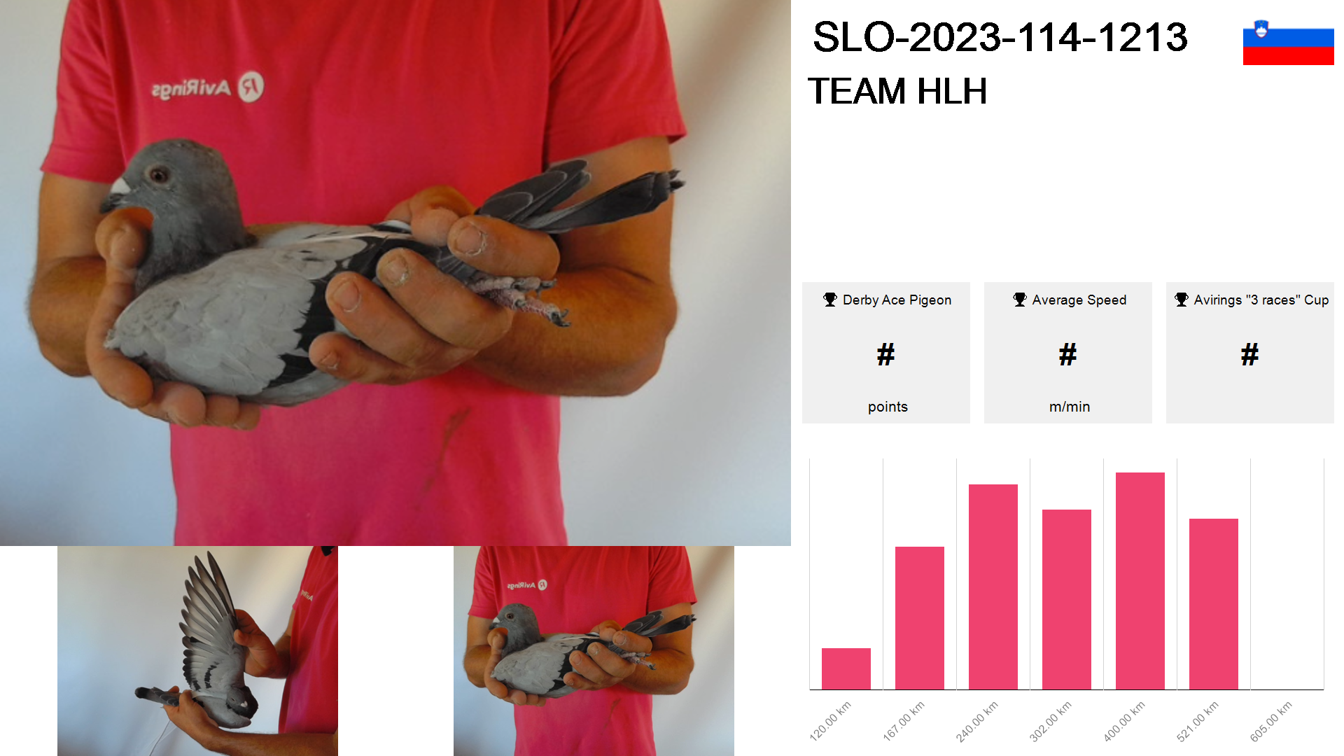 | Race | Position | Number of pigeons | Percent | Speed | Distance |