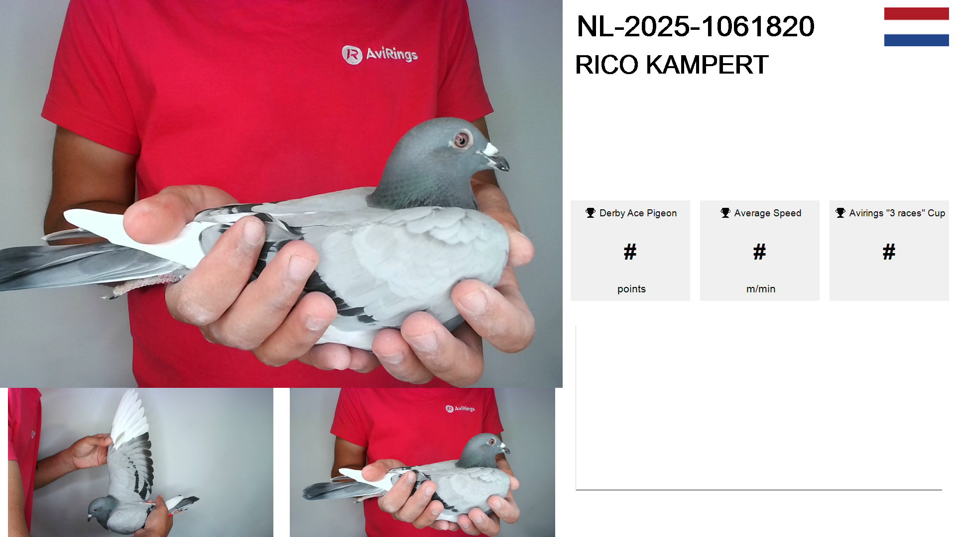 | Race | Position | Number of pigeons | Percent | Speed | Distance |